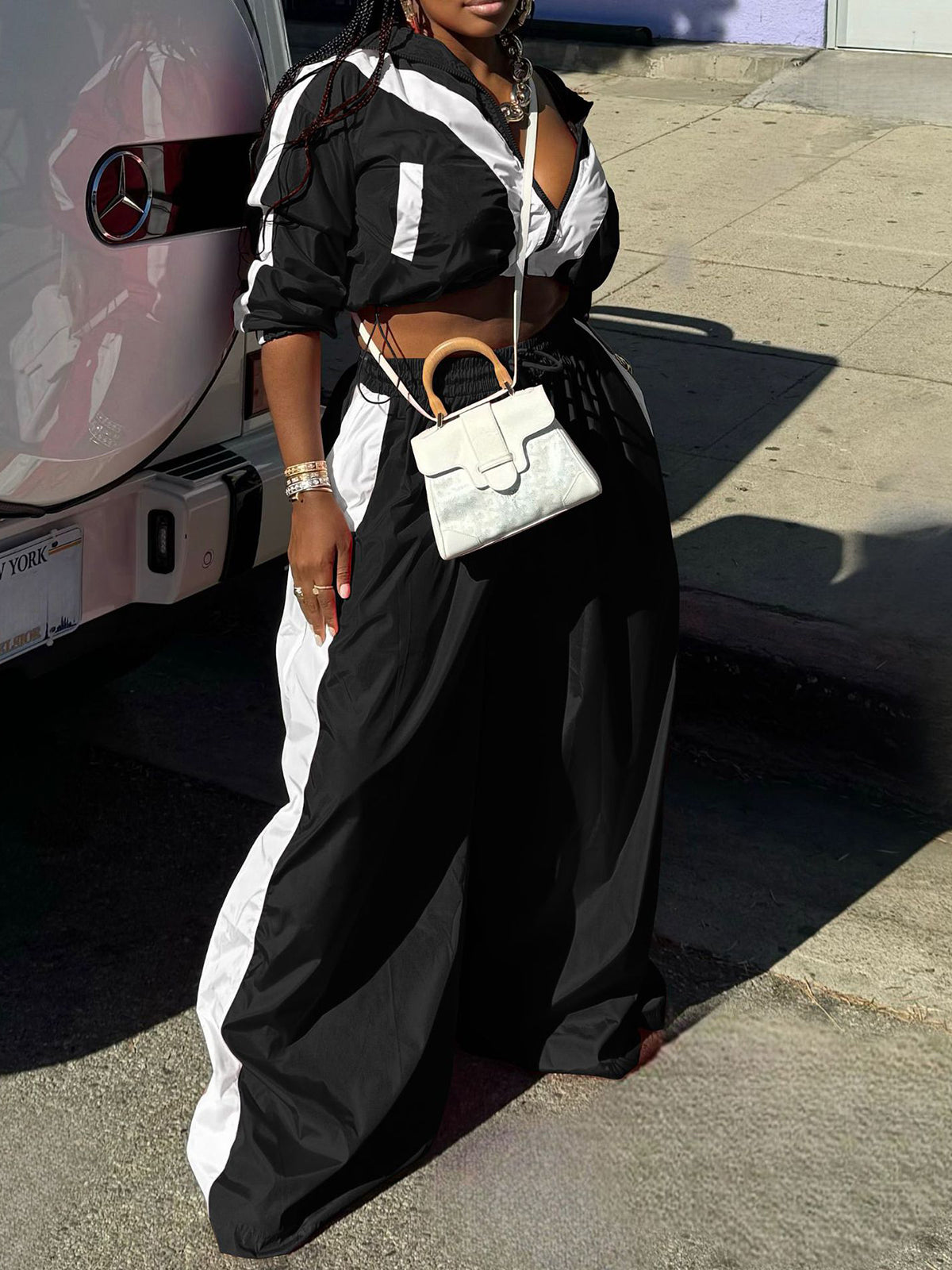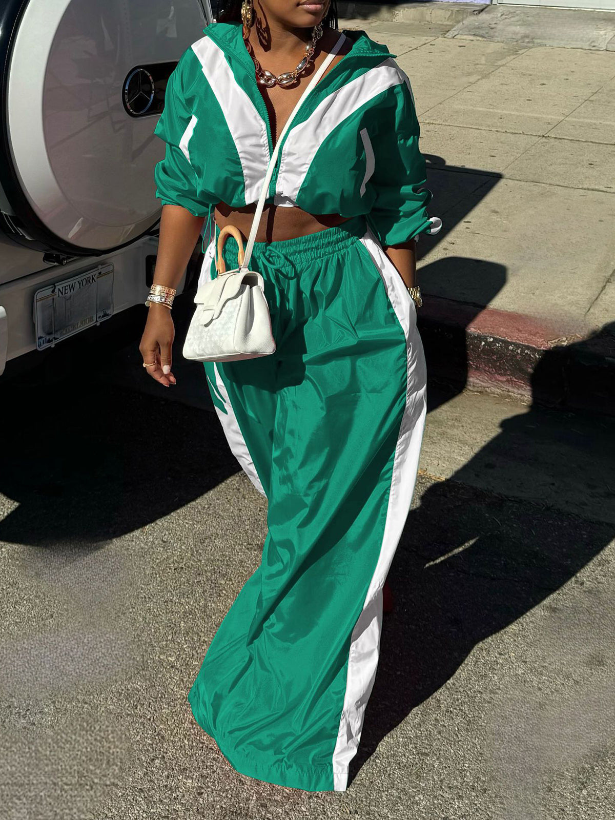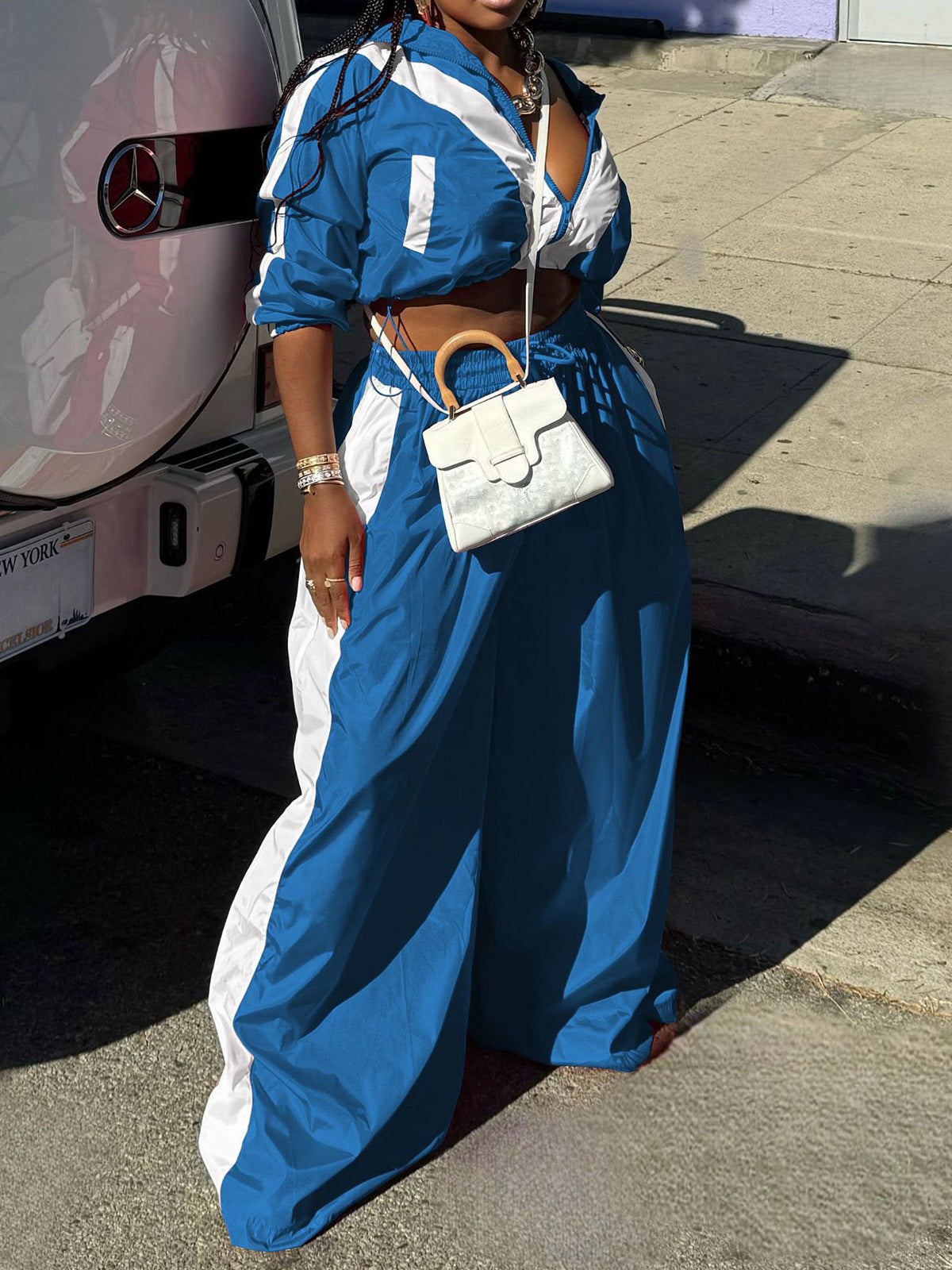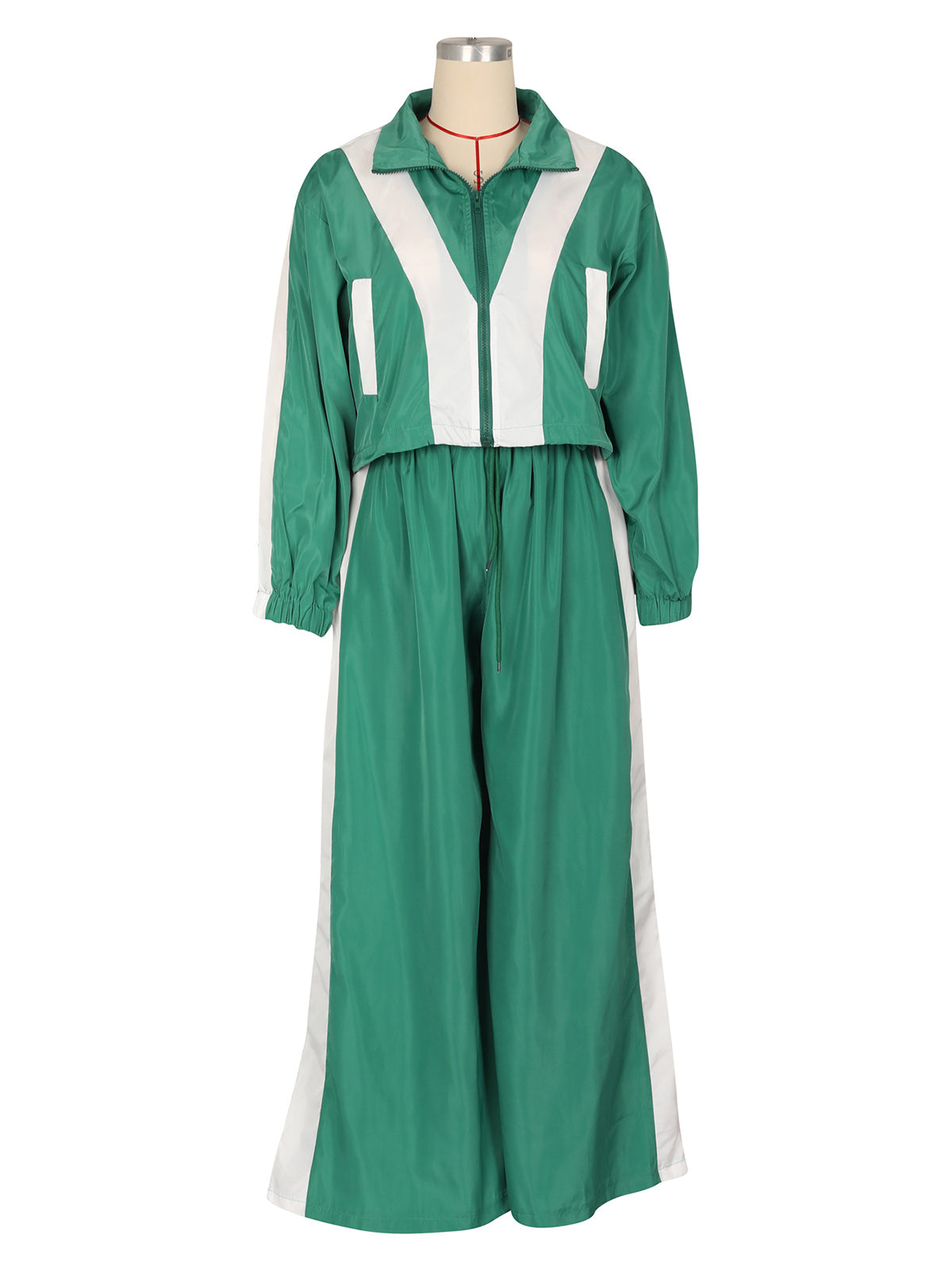 # Patchwork Contrast Zipper Collar Sports Two Pieces Set This versatile two-piece sports set combines modern design with practical functionality. The patchwork contrast detailing adds visual interest, while the zipper collar provides adjustable comfort and easy layering options. Crafted for active wear, this set delivers both style and performance for everyday athletic activities. The coordinated pieces work seamlessly together, offering wholesale buyers a complete solution for their inventory. Perfect for customers seeking contemporary sportswear with quality construction and eye-catching design elements.