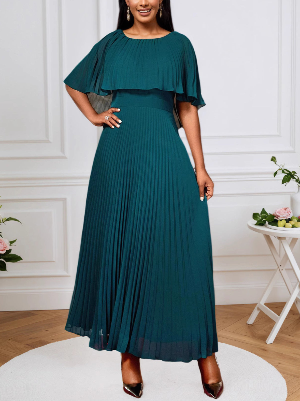 This plus size maxi dress features elegant ruffled sleeves, a slim fit, and a stylish pleated hem, combining comfort with a flattering silhouette. Ideal for wholesale buyers seeking trendy, versatile dresses that cater to diverse body shapes and occasions.