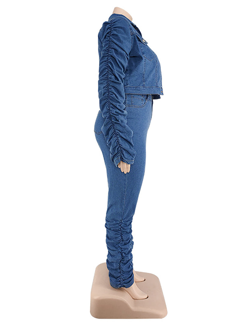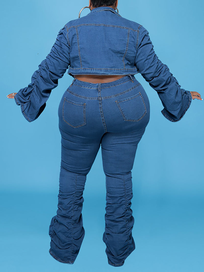 # Plus Size Stacked Denim Jacket And Pant Casual Set Elevate your casual wardrobe with this versatile two-piece denim ensemble, designed for the modern plus-size customer. The stacked silhouette creates a contemporary, fashion-forward look that works for everyday wear or relaxed social occasions. Featuring a structured denim jacket paired with matching stacked pants, this set offers a cohesive styling solution that simplifies outfit coordination. The quality denim construction ensures durability and longevity, making it a reliable addition to any collection. Perfect for wholesale buyers seeking trendy, size-inclusive basics that appeal to diverse customer demographics.
