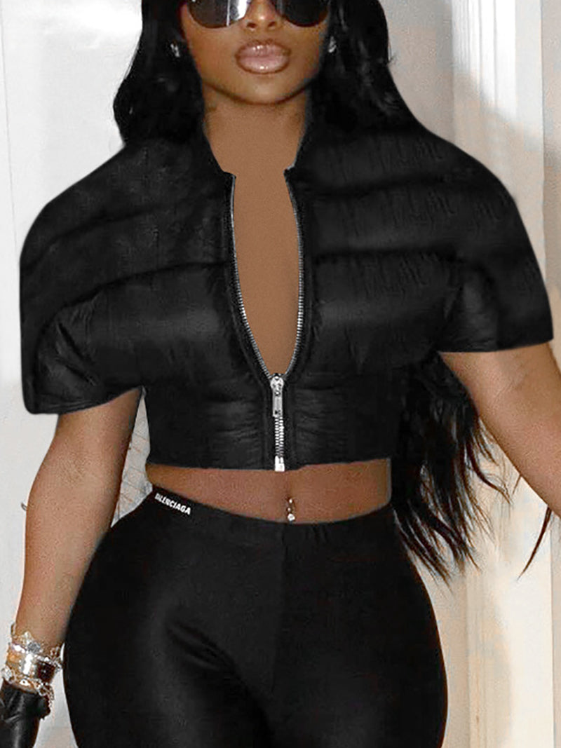 Black Cropped Short Sleeve Puffer Jackets Coats