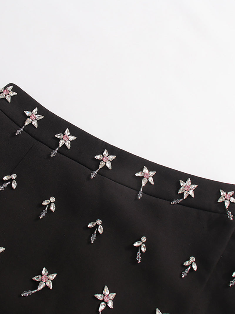 Rhinestone Embellished Cropped Top And Mini Skirt Sets