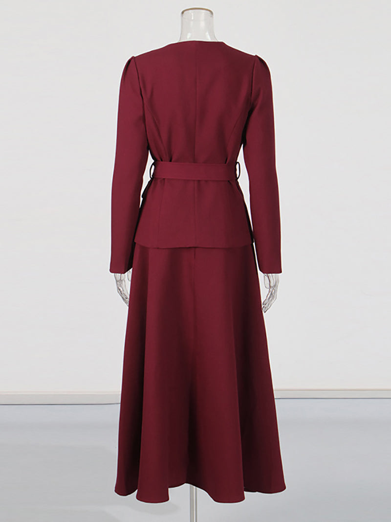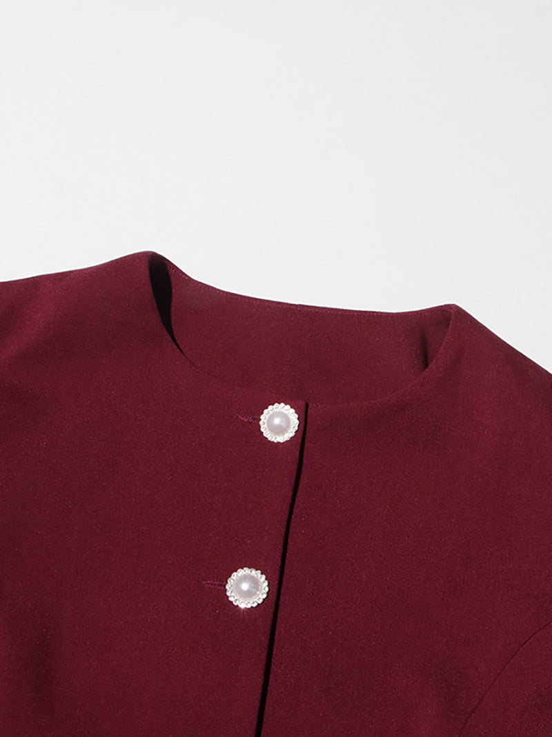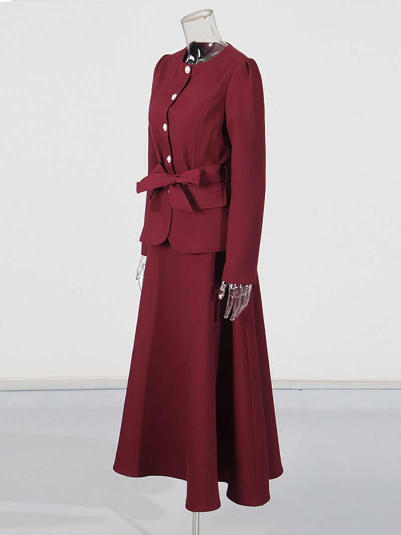 Round Neck Single Breasted Slim Top and Long Skirt Set