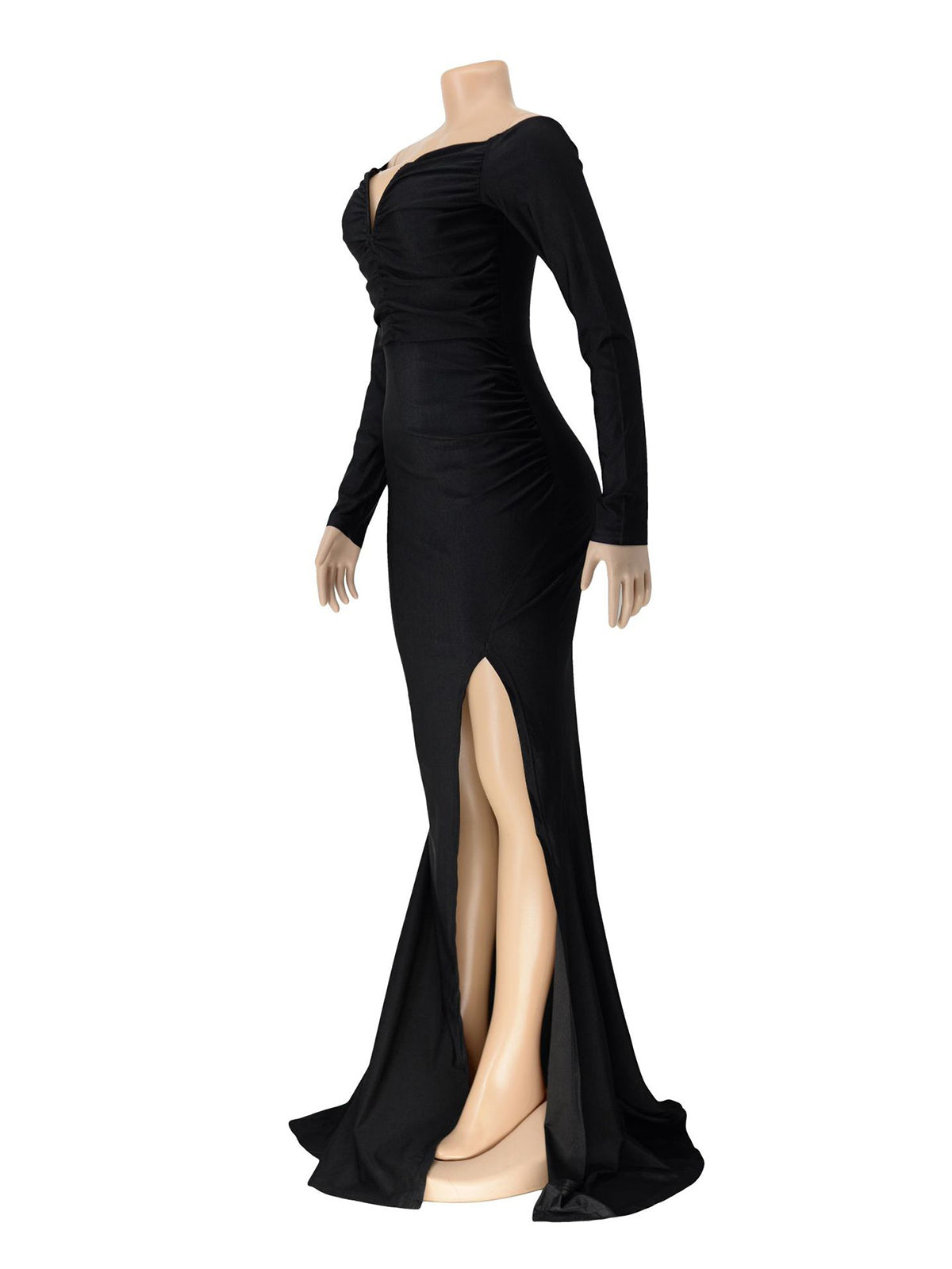 Exceptional value meets sophisticated style with this stunning backless evening dress. Featuring a daring off-the-shoulder neckline and elegant side slit, this piece delivers red-carpet glamour at an unbeatable price point. The open back design creates a bold, sensual silhouette perfect for special occasions, cocktail events, or memorable nights out. Crafted to flatter and impress without breaking the bank, this dress proves luxury doesn't require a luxury price tag.