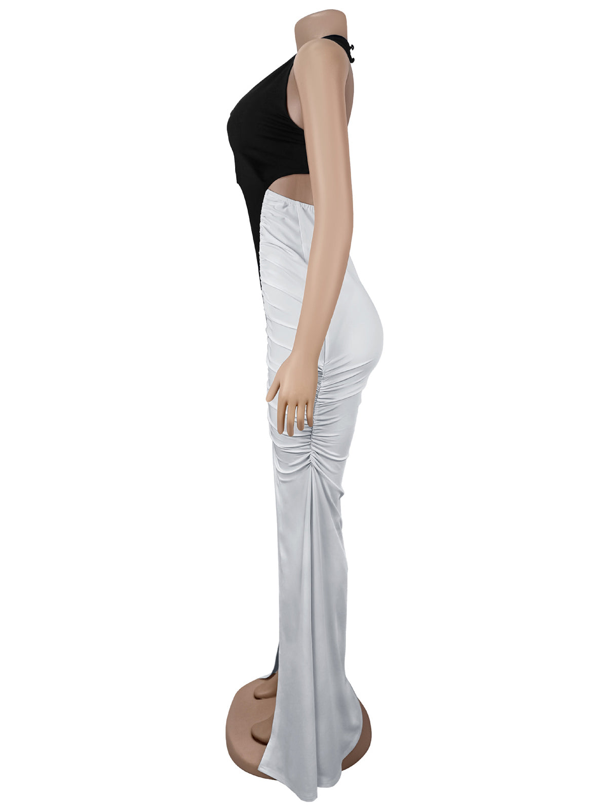 Sexy Backless Ruched Slit Halter Maxi Dress