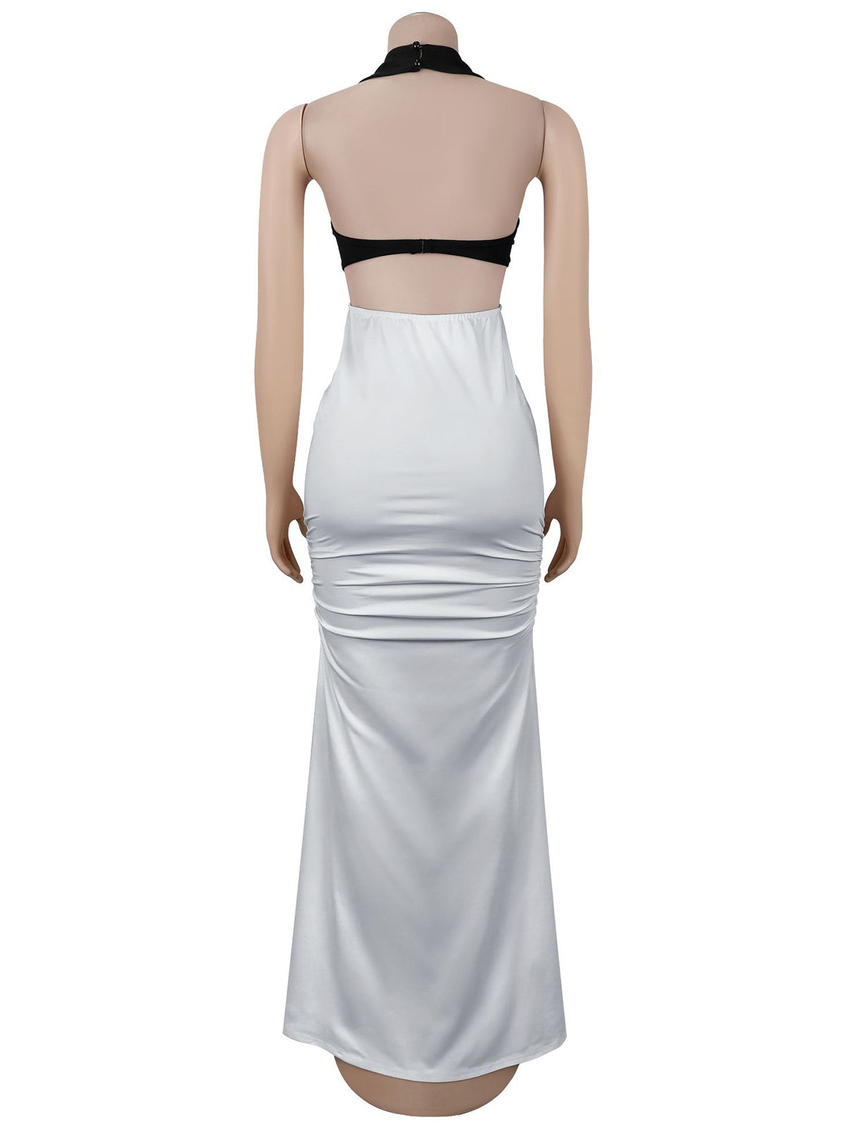 # Sexy Backless Ruched Slit Halter Maxi Dress Make a bold statement with this stunning backless maxi dress designed for those who dare to stand out. The halter neckline provides secure support while the open back creates an alluring silhouette. Ruched detailing adds dimension and flatters the figure, while the high slit offers movement and modern edge. Perfect for evening events, parties, or special occasions where you want to turn heads. This dress combines elegance with daring style, making it an essential piece for any fashion-forward wardrobe. Available for wholesale orders.
