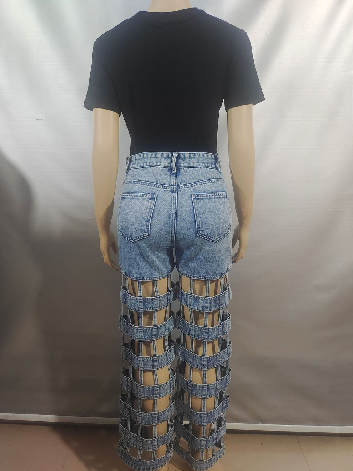 Sexy Cut Out Straight Leg Jeans These striking straight-leg jeans feature bold cut-out details that deliver contemporary edge and visual interest. Crafted for the modern wardrobe, they combine classic denim construction with fashion-forward design elements. The straight-leg silhouette offers versatile styling options, working seamlessly with everything from casual basics to elevated pieces. Perfect for retailers seeking inventory that appeals to trend-conscious customers looking to make a statement. High-quality denim ensures durability and repeat purchases.