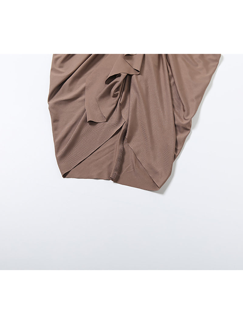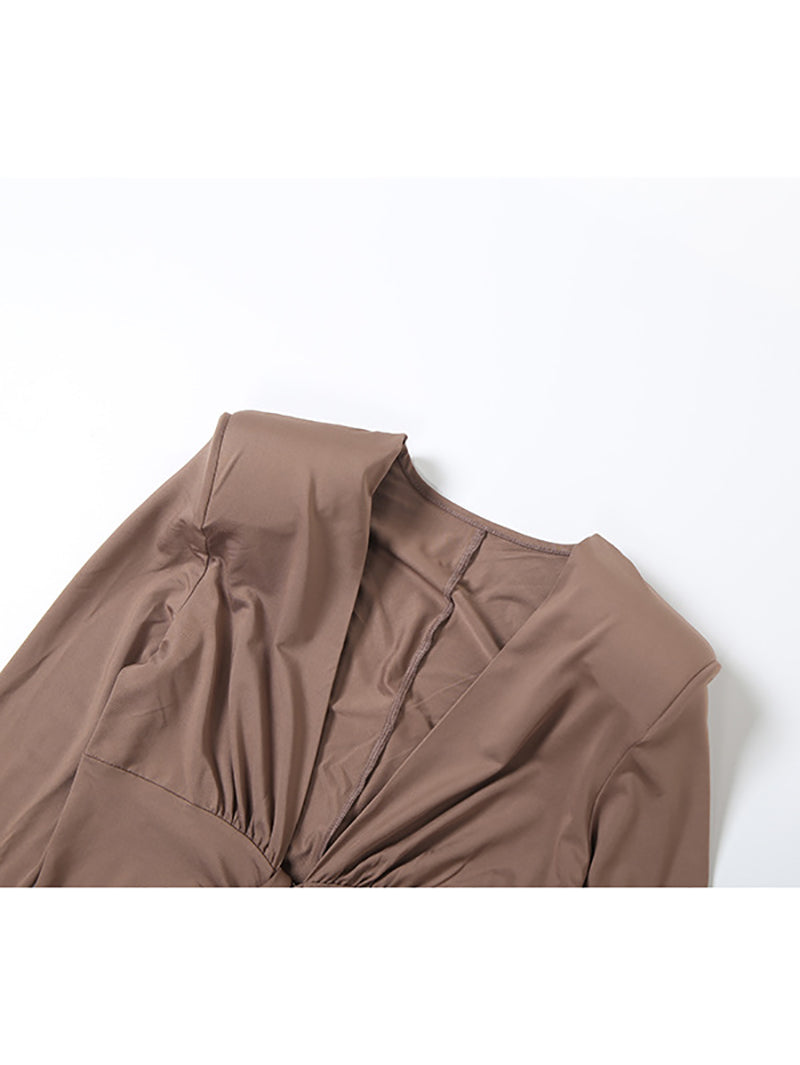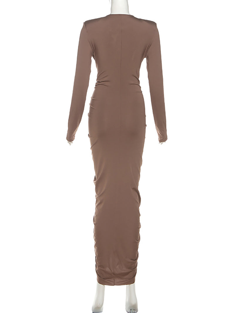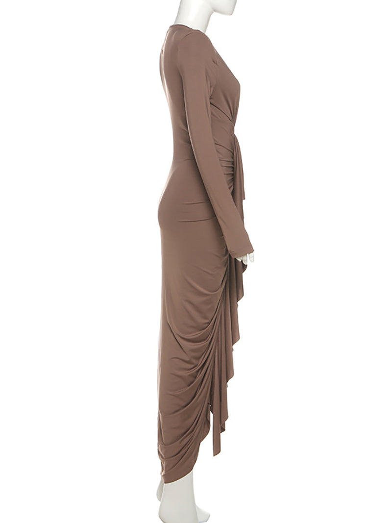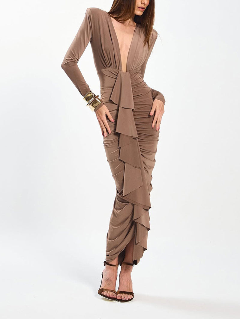 Sexy Deep V Neck Bodycon Ruffle Pleated Maxi Dress