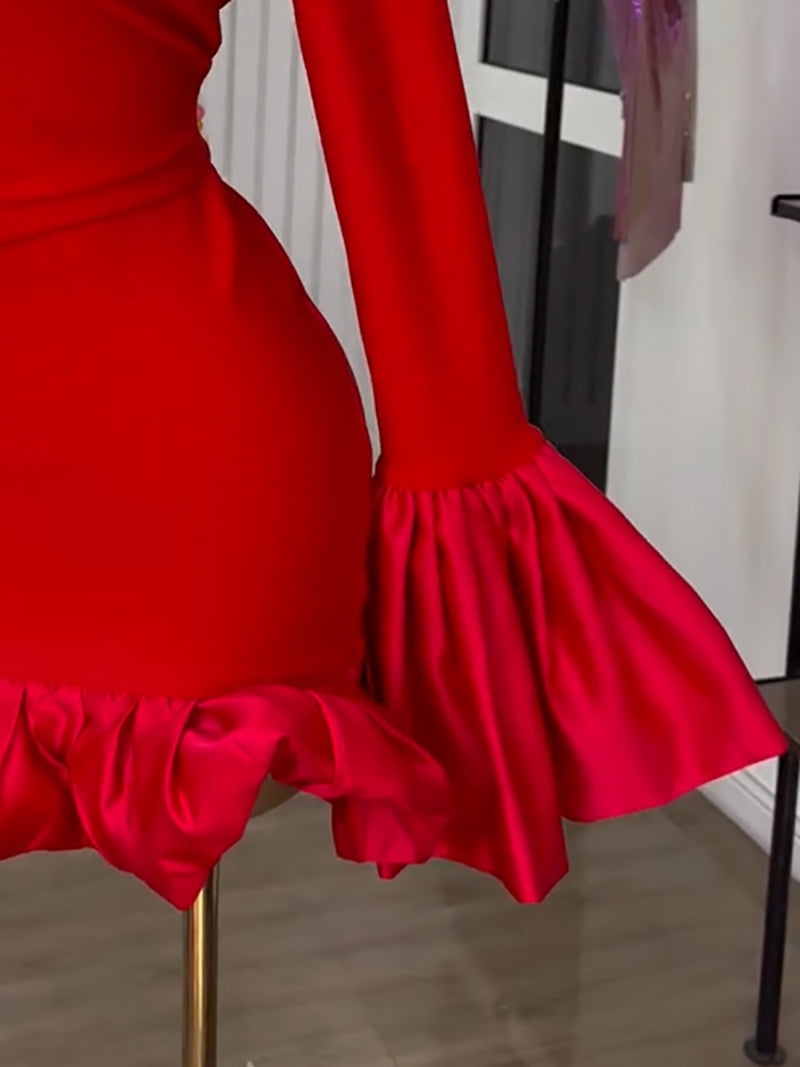 # Sexy Flare Sleeve Ruffles Bodycon Mini Dress Elevate your inventory with this stunning bodycon mini dress featuring dramatic flare sleeves and delicate ruffled detailing. The fitted silhouette hugs curves beautifully while the voluminous sleeves add contemporary flair and movement. Perfect for wholesale buyers seeking trendy pieces that appeal to fashion-forward customers. This dress combines sultry sophistication with modern design elements, making it an ideal choice for retailers targeting the party and night-out market. High-quality construction ensures durability through multiple wears and washes. Stock this versatile piece in various sizes to maximize sales potential across your customer base.