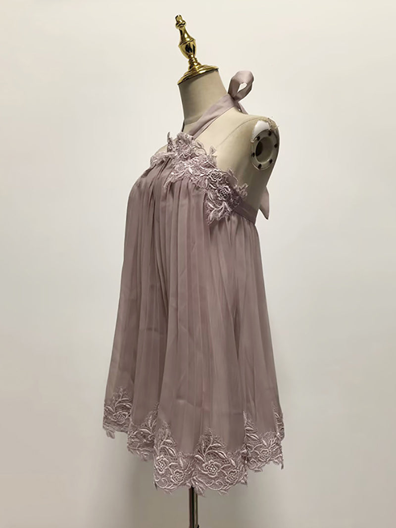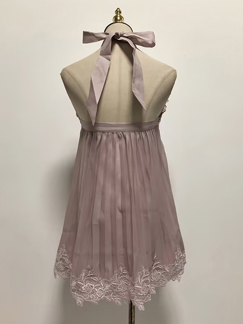 Discover effortless elegance with this sexy lace halter mini dress. The delicate lace detailing and ruched design create a flattering silhouette, while the loose fit ensures all-day comfort. The halter neckline adds a touch of sophistication and allure. Perfect for nights out, parties, or any occasion where you want to feel confident and stunning. This versatile piece transitions seamlessly from casual to dressy, making it an essential addition to your wardrobe. Affordable luxury that doesn't compromise on style or quality.