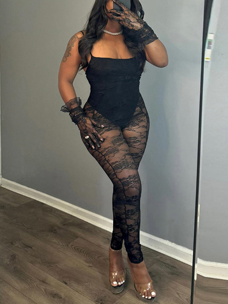 Sexy Lace Patchwork Sleeveless See Through Jumpsuits