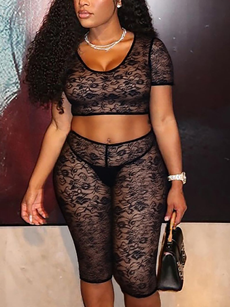 Effortlessly elevate your style with this Sexy Lace See Through Crop Top Capri Legging Set. Designed for both comfort and style, this set features high-quality lace and a flattering crop top and capri pants silhouette. Perfect for any occasion, this set offers unbeatable value for a chic and sophisticated look.