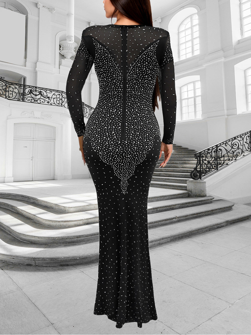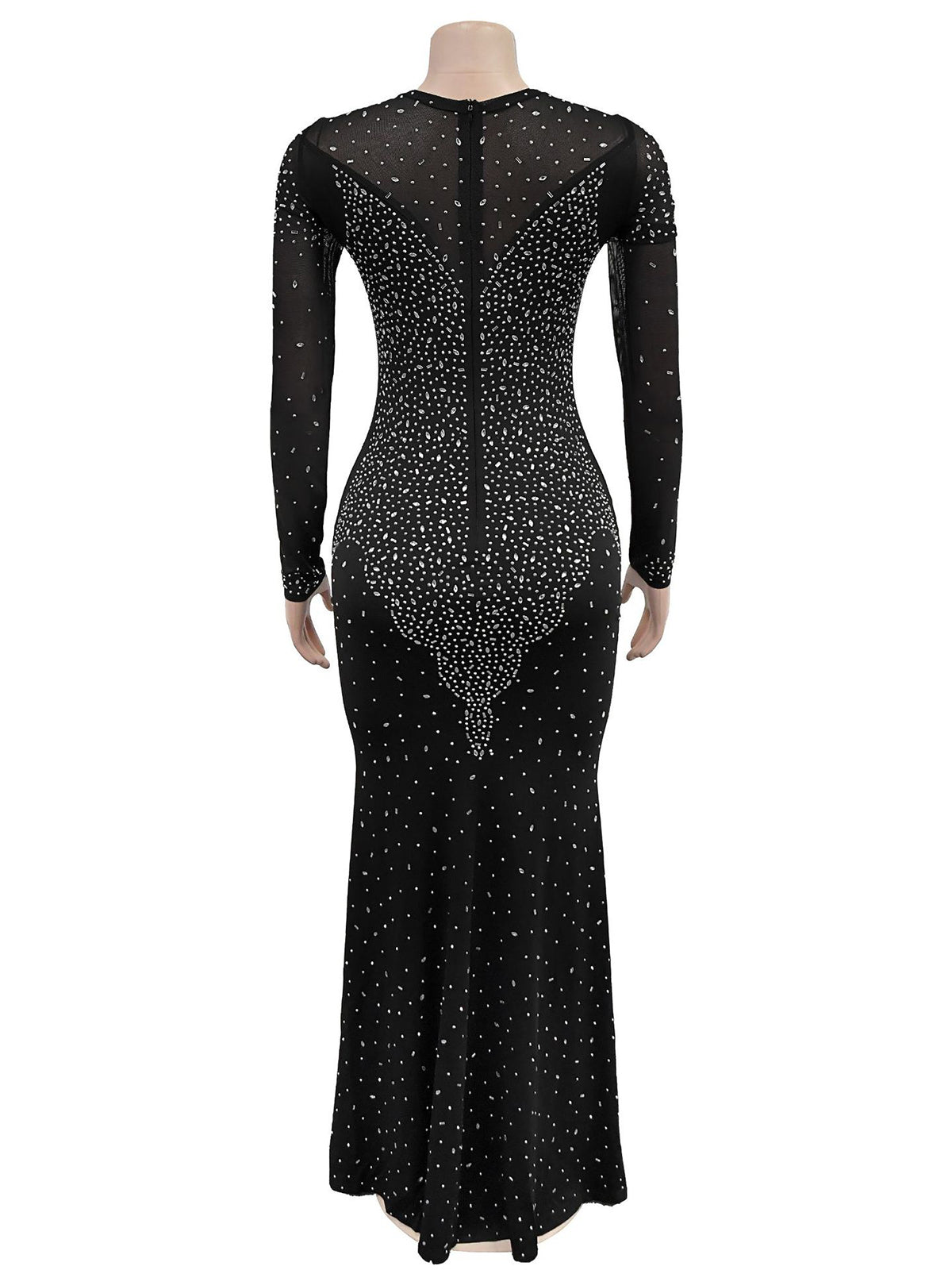 # Sexy Rhinestone See Through Party Maxi Dress Make a statement with this stunning maxi dress featuring intricate rhinestone embellishments and sheer paneling. The see-through design creates an alluring silhouette perfect for evening events, parties, and special occasions. Crafted with quality materials, this dress combines elegance with bold style. The flowing maxi length offers sophistication while the rhinestone detailing adds glamorous sparkle. Ideal for wholesale buyers seeking eye-catching pieces that appeal to fashion-forward customers. Available for bulk orders with competitive pricing.