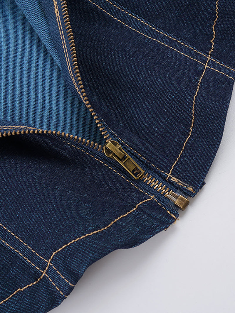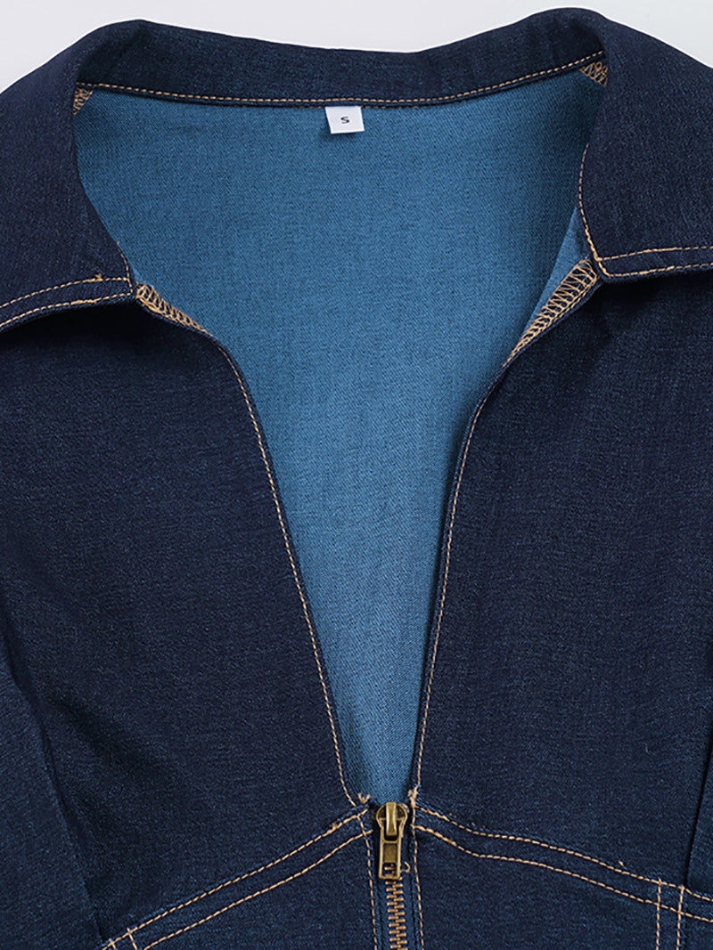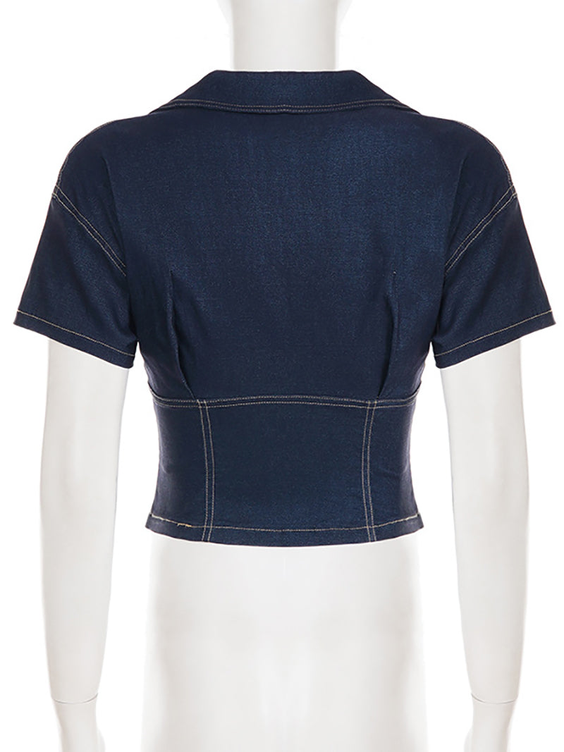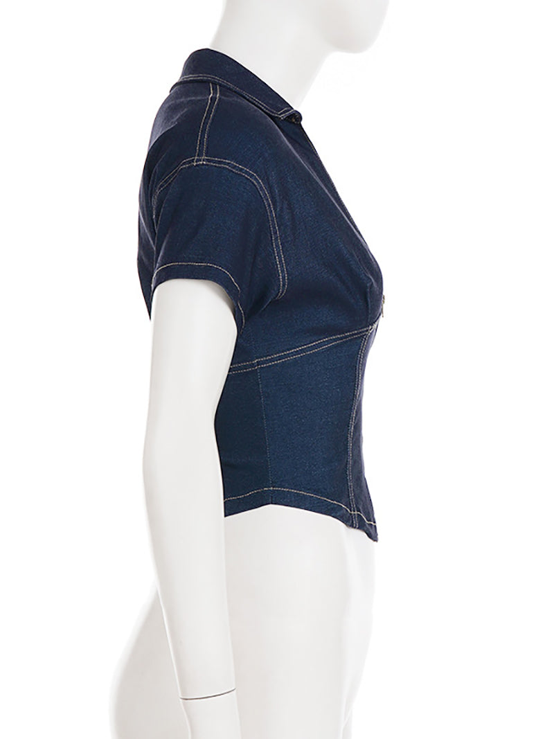 Short Sleeve Zip Front Cinched Waist Crop Top