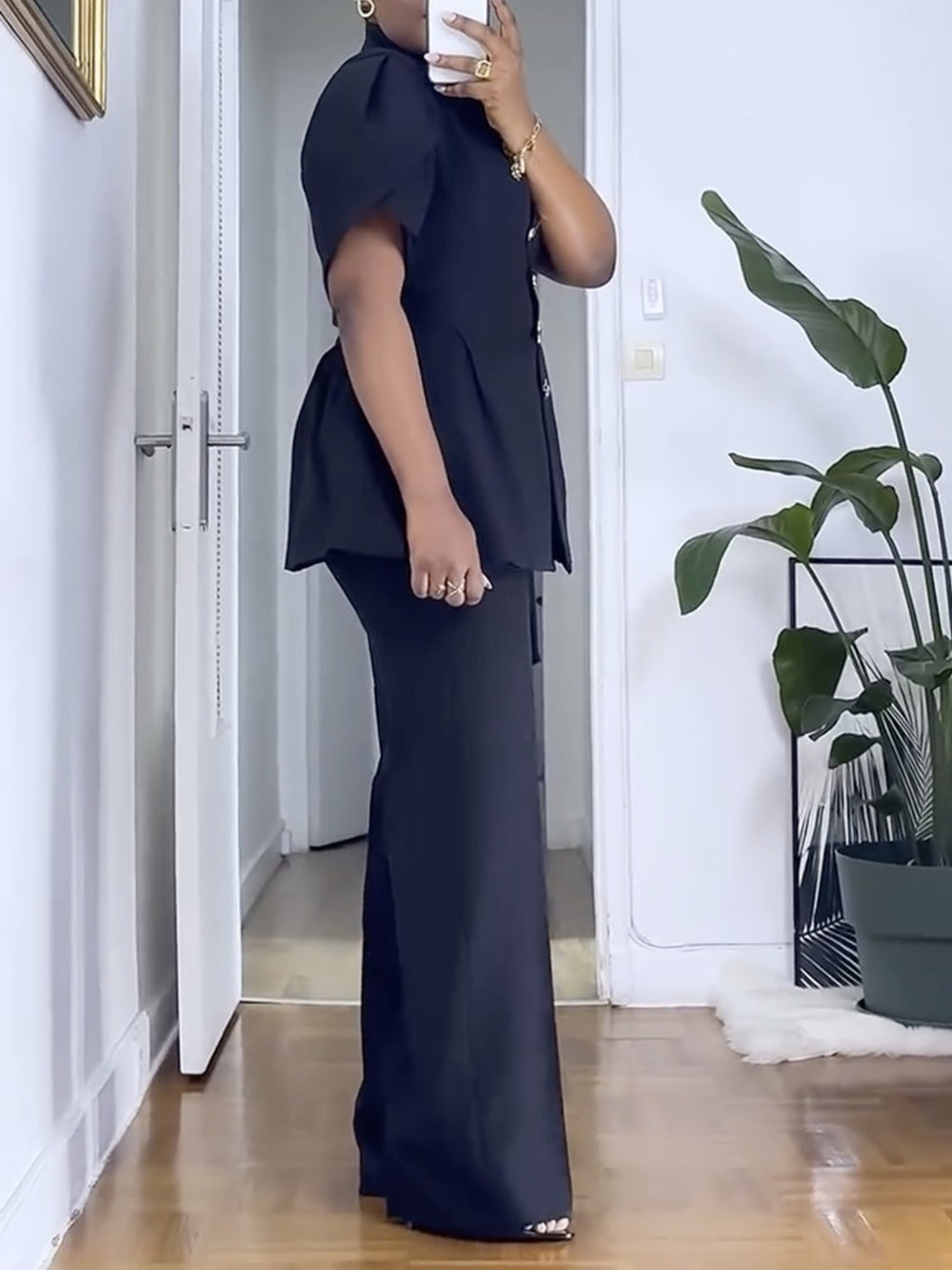 # Single-breasted Cinched Waist Shirt Straight Pants Set Elevate your wholesale inventory with this versatile two-piece ensemble. The single-breasted shirt features a refined cinched waist design that flatters diverse body types, while the coordinating straight pants offer timeless appeal and comfortable wear. Perfect for retailers seeking quality basics that combine contemporary styling with practical construction. This set delivers excellent value for bulk orders, making it an ideal choice for boutiques and fashion retailers looking to stock reliable, on-trend pieces that appeal to style-conscious customers.