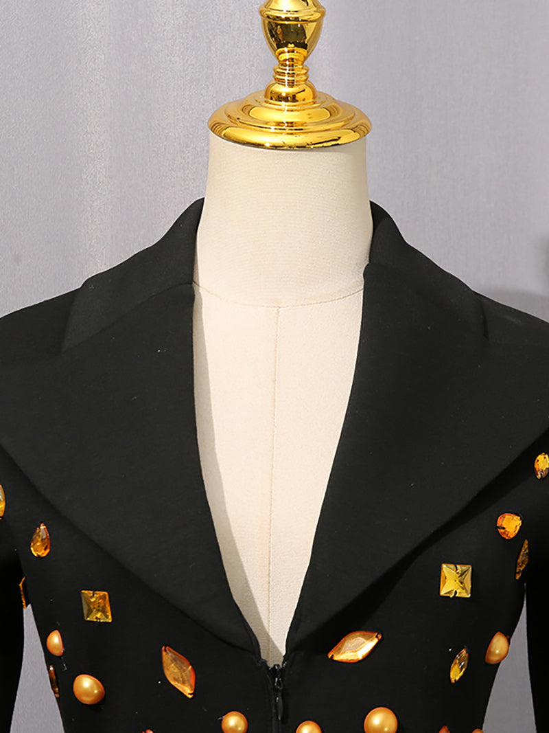 # Sparkling Crystal Embellished Blazer Dress Elevate your collection with this sophisticated blazer dress, featuring stunning crystal embellishments that catch the light beautifully. The tailored silhouette combines professional polish with glamorous detail, making it versatile for both corporate events and upscale occasions. Premium construction ensures durability and lasting appeal for your customers. The crystal accents add luxury without overwhelming the clean lines, creating a piece that works across multiple seasons and styling options. Perfect for retailers seeking statement pieces that deliver both elegance and wearability.