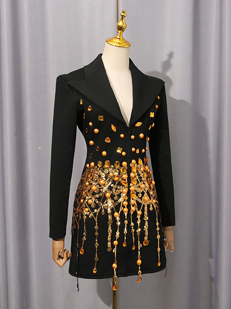 # Sparkling Crystal Embellished Blazer Dress Elevate your collection with this sophisticated blazer dress, featuring stunning crystal...