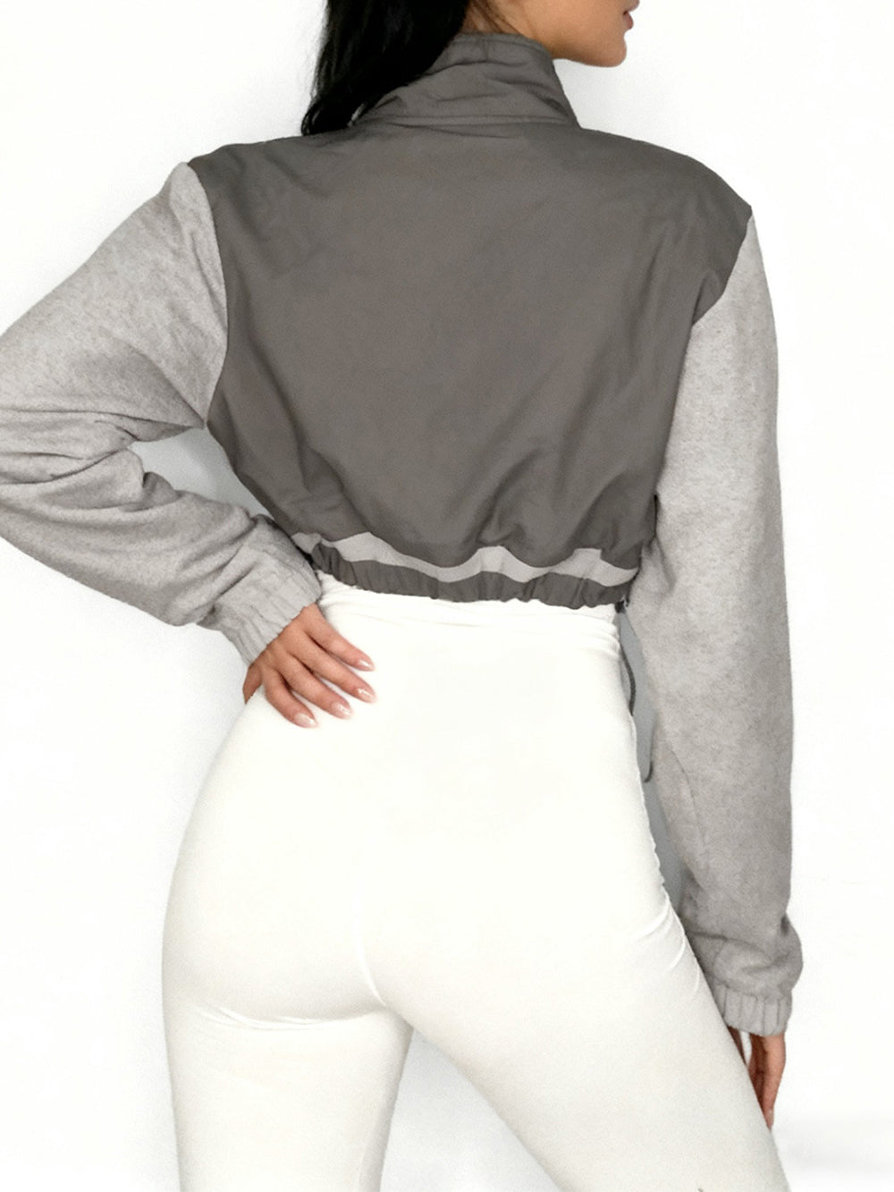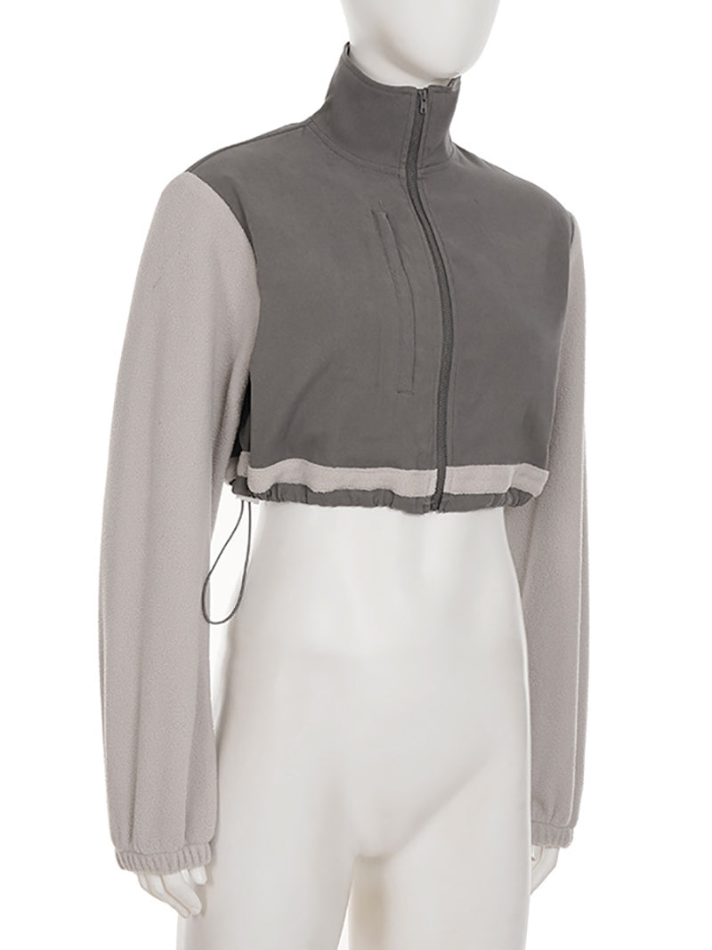 This cropped jacket features a stand-up collar and adjustable drawstring for a customized fit. Its lightweight design offers comfort and ease of movement, making it ideal for layering in various weather conditions. Perfect for retailers seeking versatile outerwear that combines style and functionality.