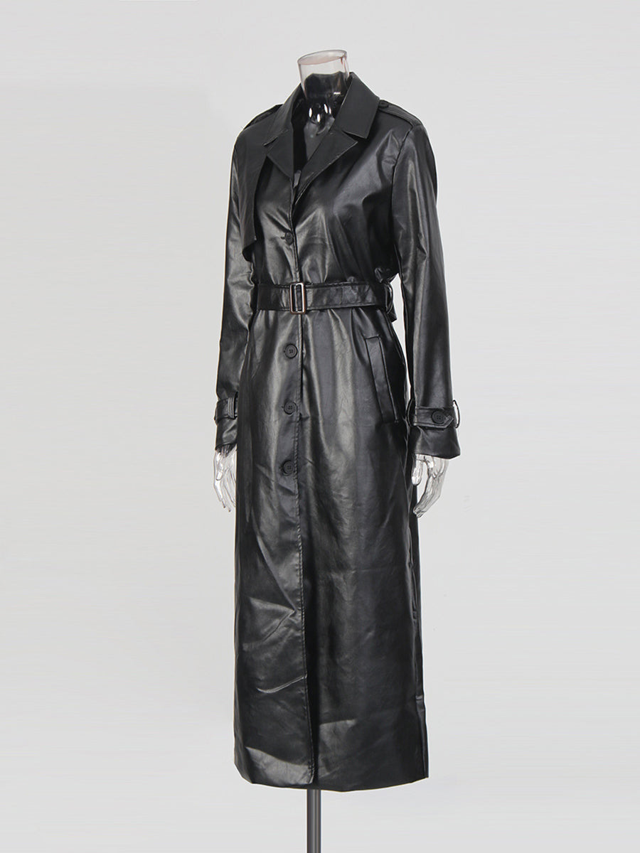 # Vintage Belt PU Leather Trench Coat Elevate your wholesale collection with this classic vintage-inspired trench coat crafted from durable PU leather. Featuring a distinctive belt detail at the waist, this piece delivers timeless sophistication with modern edge. The structured silhouette flatters all body types while the premium synthetic leather ensures easy care and longevity. Perfect for bulk orders, this versatile coat transitions seamlessly from season to season, making it an essential staple for retailers seeking quality basics with enduring appeal. Ideal for fashion-forward customers who value both style and practicality.