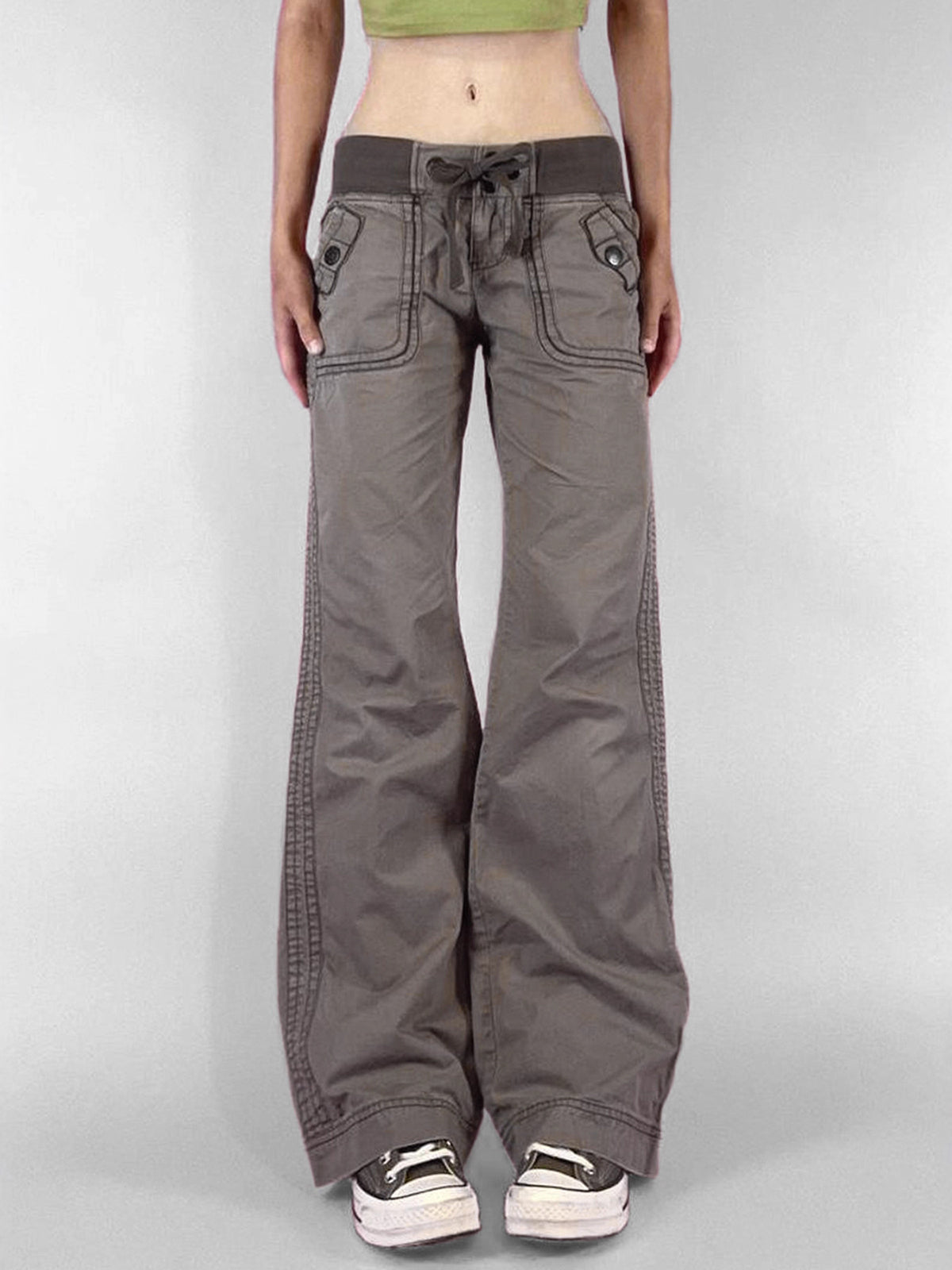 # Vintage Drawstring Cargo Pants Classic cargo pants featuring functional drawstring waistband and multiple utility pockets for...