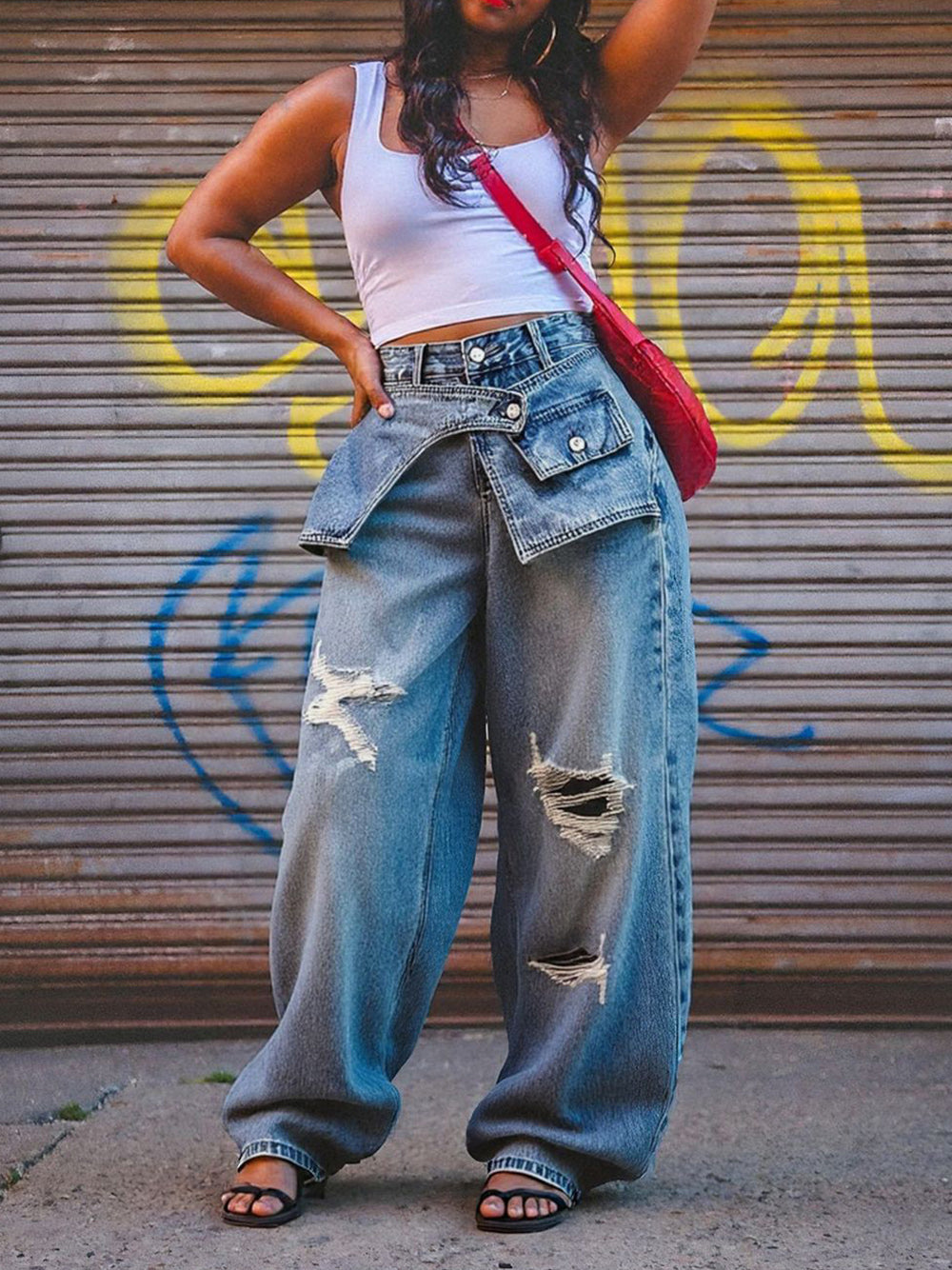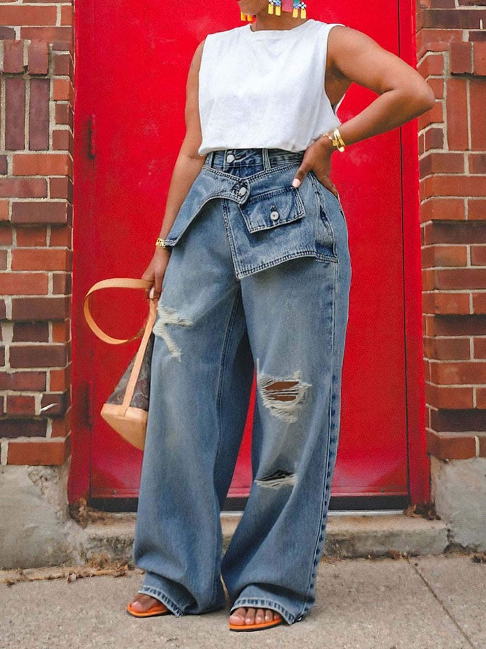 Vintage Ripped Straight Leg Jeans Classic straight-leg silhouette with authentic distressed detailing for a timeless, worn-in aesthetic. Crafted from durable denim, these jeans offer reliable quality and versatile styling options for any wardrobe. The strategic ripping adds character and edge while maintaining the structured fit that works across seasons. Perfect for wholesale buyers seeking trendy basics with enduring appeal. Comfortable enough for everyday wear, distinctive enough to stand out in retail displays.