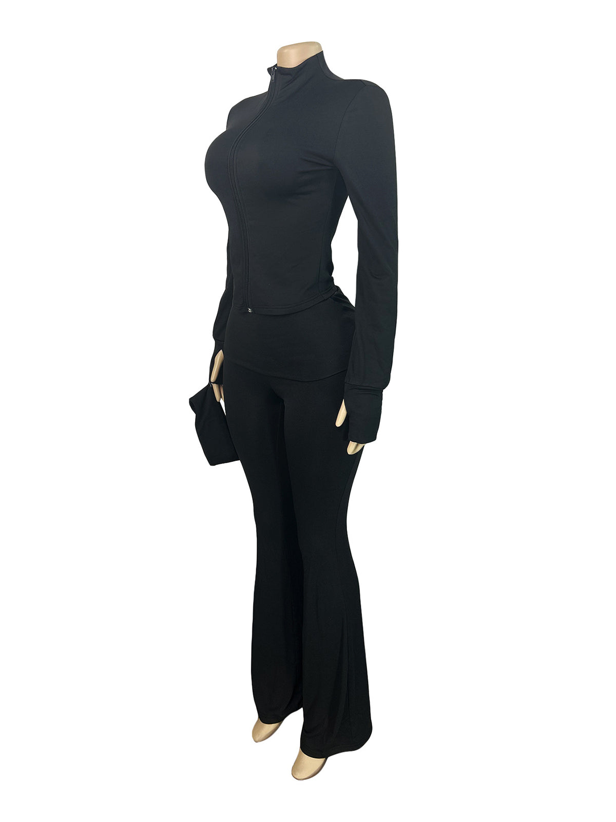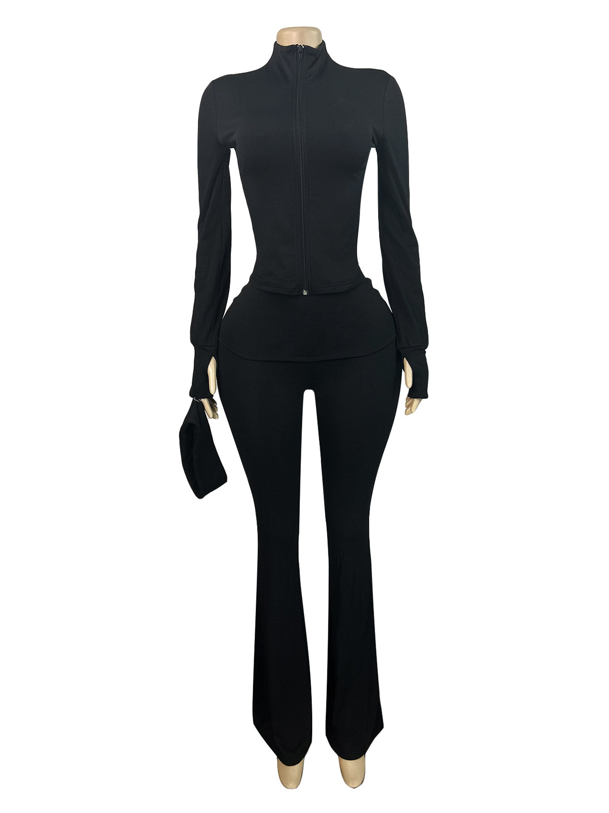 # Zip Cardigan Top and Flared Pants Sports Set Elevate your activewear collection with this versatile two-piece sports set. The zip-up cardigan top offers easy layering and temperature control, while the flared pants provide a modern silhouette with comfortable movement. Perfect for gym sessions, yoga, or casual athleisure wear. High-quality construction ensures durability through frequent wear and washing. Available in multiple colorways to suit diverse customer preferences. Ideal for wholesale buyers seeking trendy, functional pieces that appeal to fitness-conscious consumers.