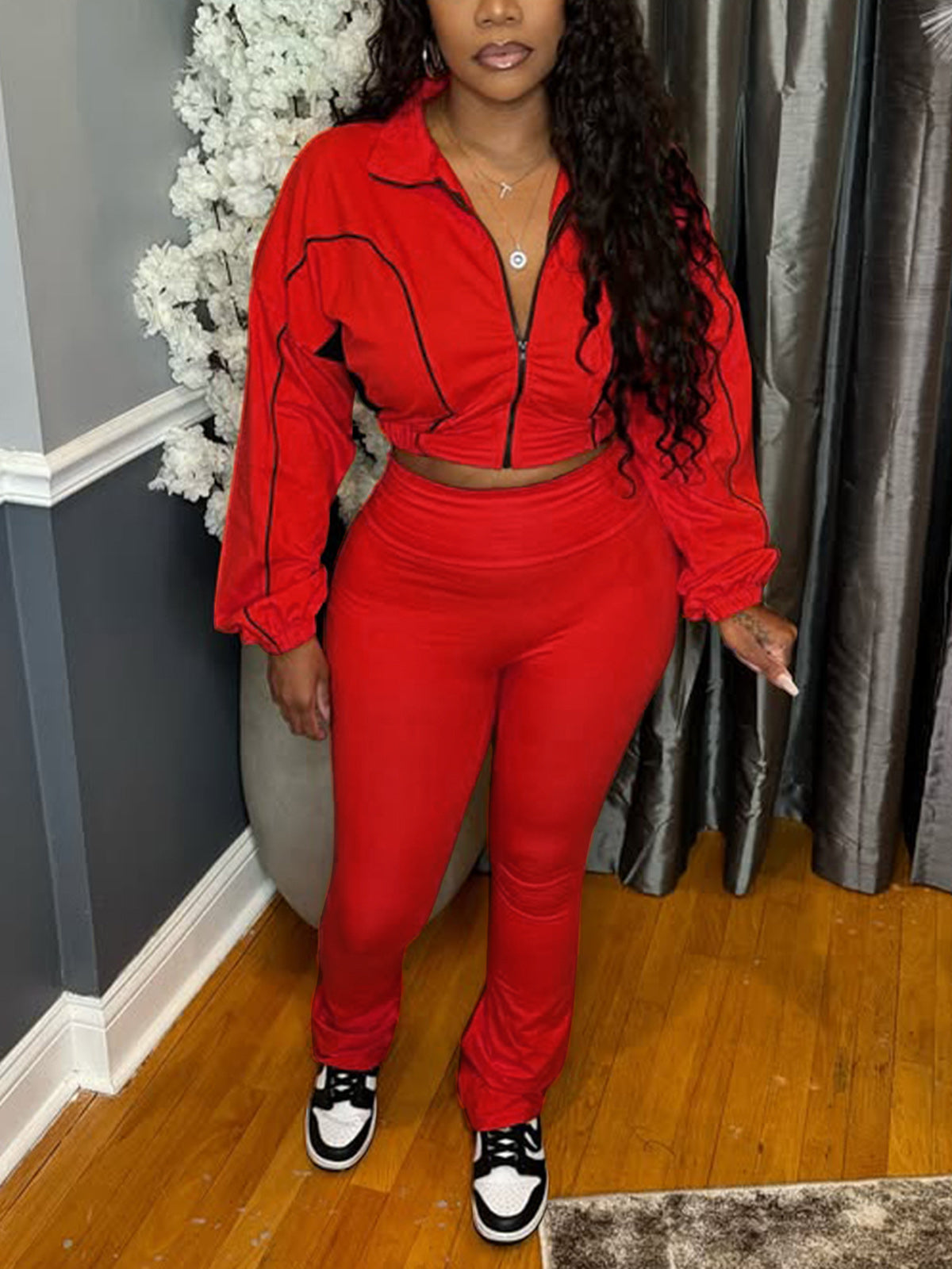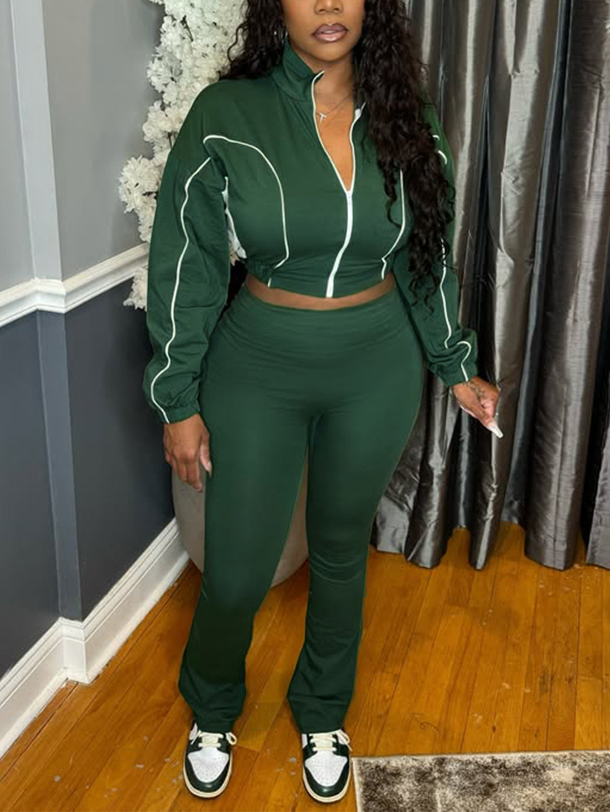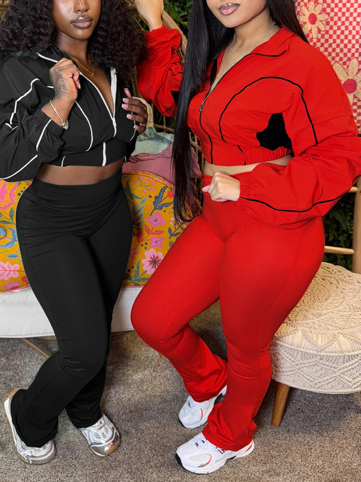 # Zipper Cropped Flared Pants Casual Two Piece Sets Elevate your wholesale inventory with this versatile two-piece set featuring cropped flared pants with functional zipper detailing. The relaxed silhouette offers contemporary appeal while maintaining comfort for everyday wear. Perfect for retailers targeting fashion-forward customers seeking casual, on-trend pieces. The flared cut provides a flattering fit, while the cropped length keeps styling options fresh and modern. Ideal for bulk orders and seasonal collections.