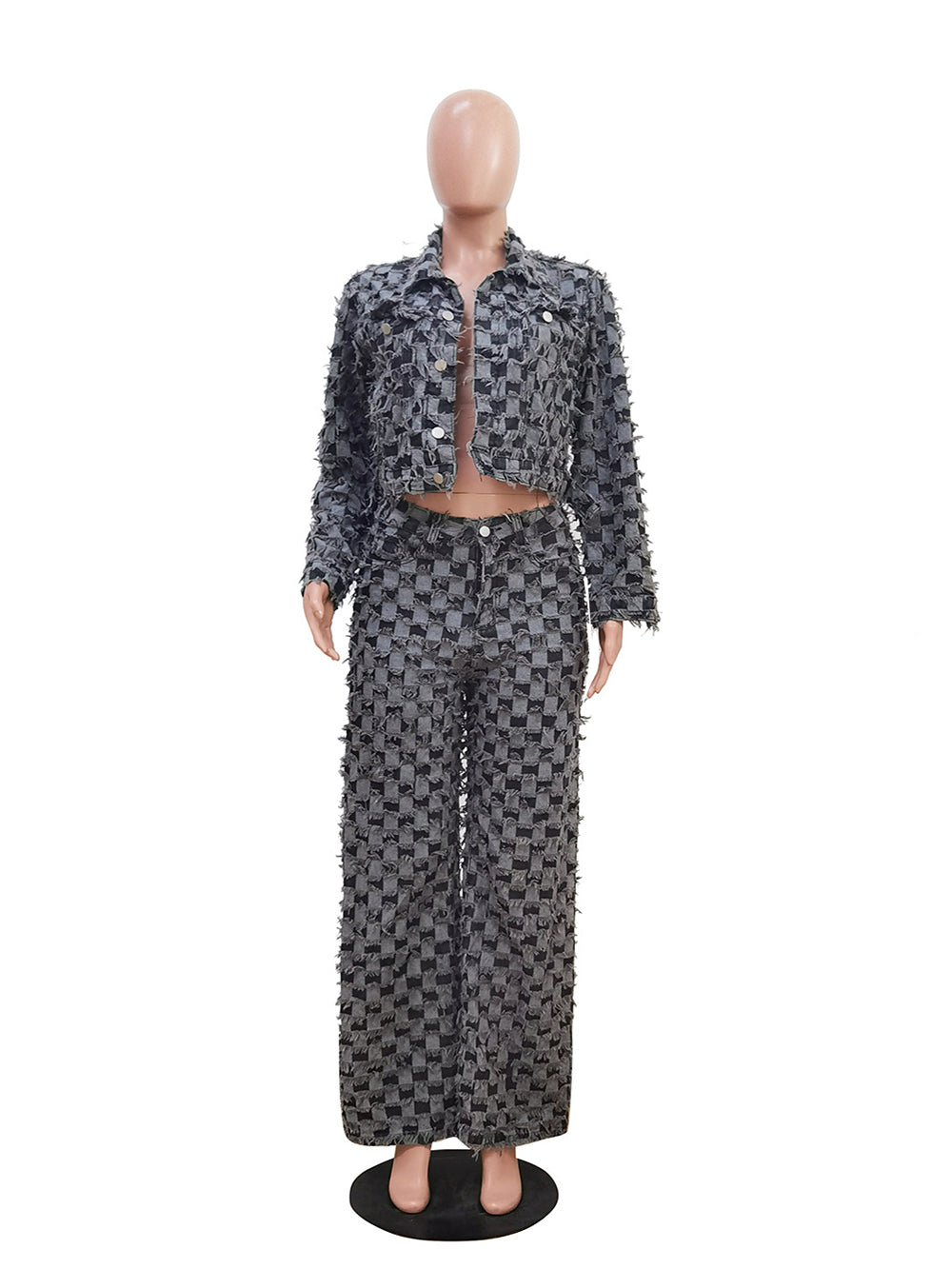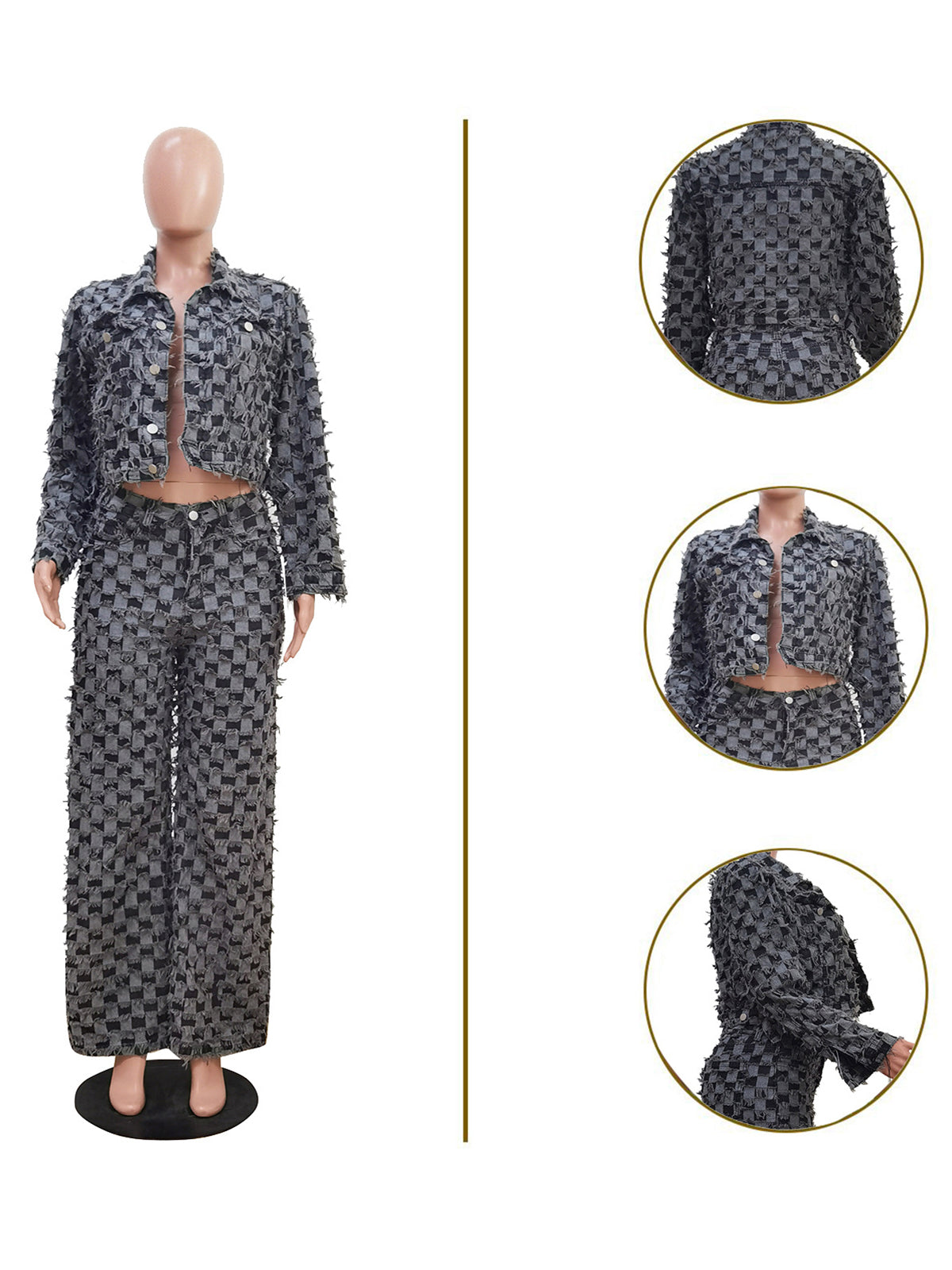 I appreciate your request, but I need clarification. You've asked me to "translate to English" (翻译成英文), but you've provided the product title already in English: "Casual Checkered Denim Jacket Baggy Jeans Set." To generate a product description, I need either: 1. **An existing product description in Chinese** that you'd like me to translate to English, or 2. **Product details or information** (in any language) that I can use to create a new English product description Could you please provide the product information or the description you'd like translated?