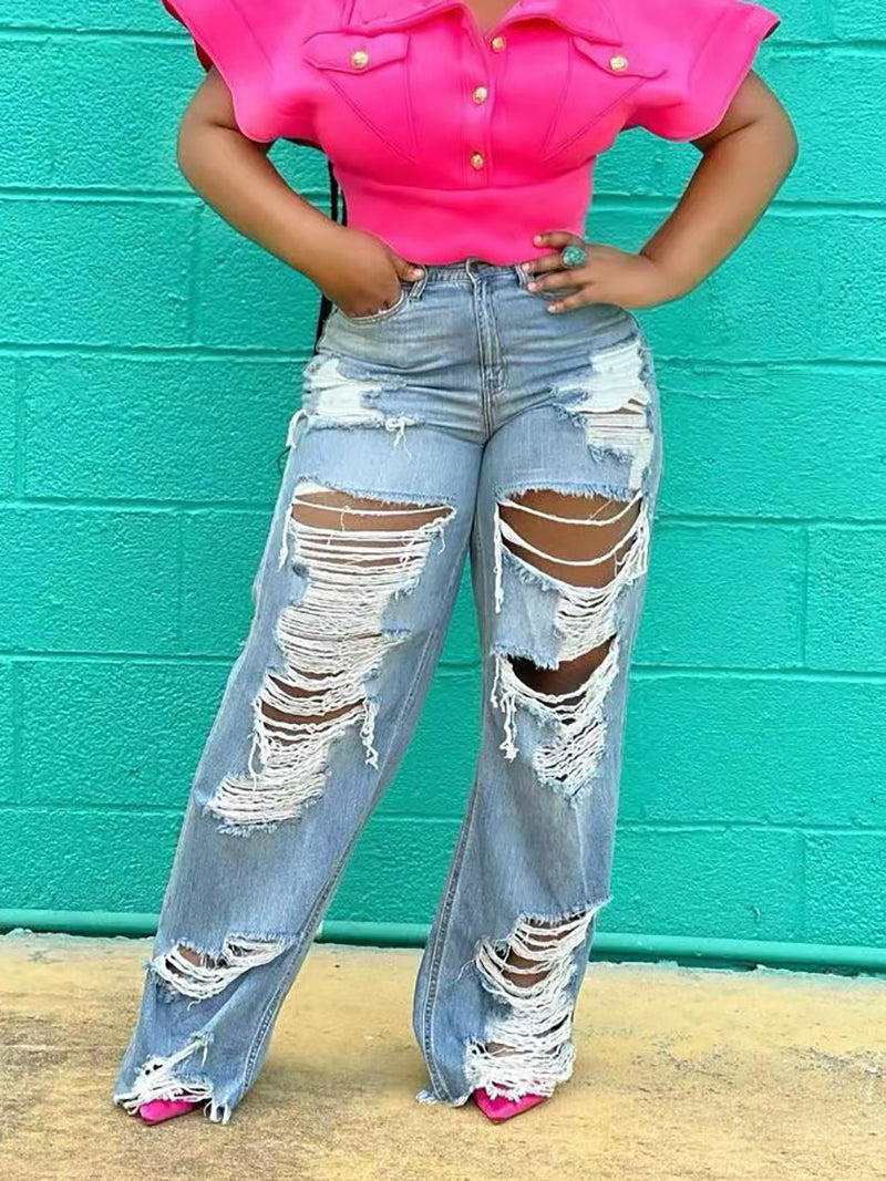 These Casual Distressed Ripped Straight Jeans offer excellent value for money, combining trendy style with durable quality. Perfect for wholesalers seeking fashionable yet affordable denim options to stock.