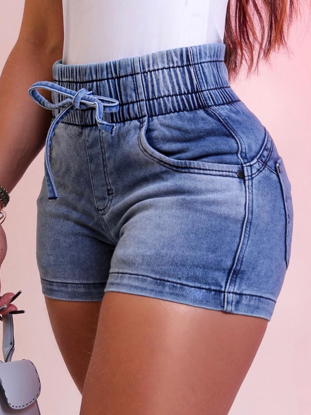 Looking for comfortable and stylish shorts for everyday wear? Look no further than our Casual Elastic Waist Lace-Up Denim Shorts! Featuring a practical elastic waist and trendy lace-up design, these shorts offer both convenience and fashion-forward style. And with their high cost-performance ratio, you won't find a better deal!