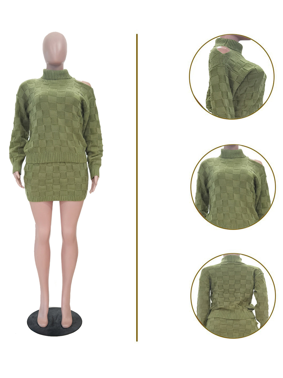 # Casual Long Sleeve Turtleneck Knit Sweater Skirt Sets Elevate your wholesale inventory with this versatile two-piece knit set. Featuring a classic turtleneck sweater paired with a coordinated skirt, this collection offers timeless appeal for retailers seeking quality basics. The long sleeves and fitted silhouette provide a polished look suitable for multiple seasons and occasions. Crafted from comfortable knit fabric, these sets deliver both style and wearability that customers will appreciate. Perfect for bulk orders, this pairing combines everyday comfort with contemporary design, making it an excellent addition to any fashion-forward product line.