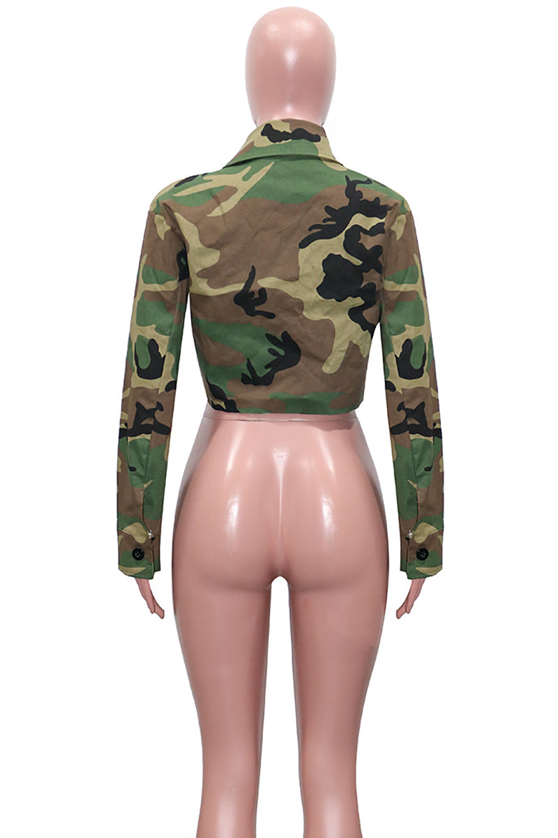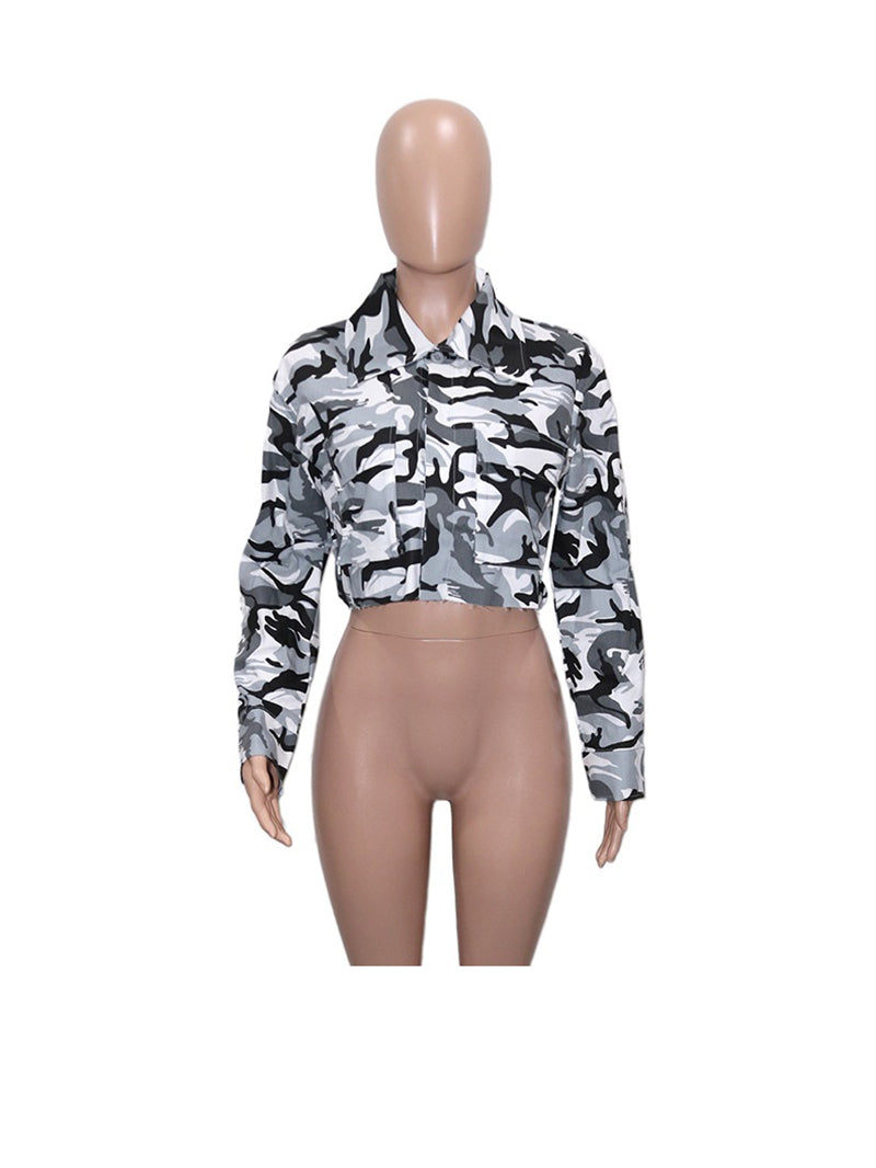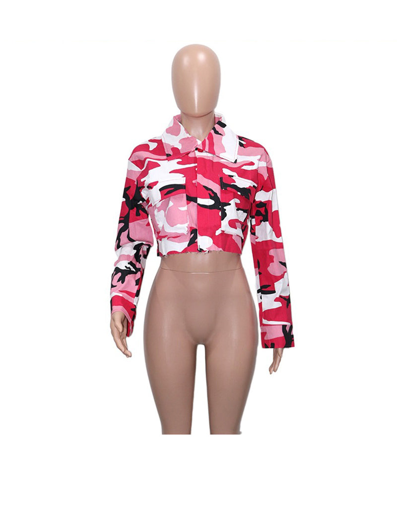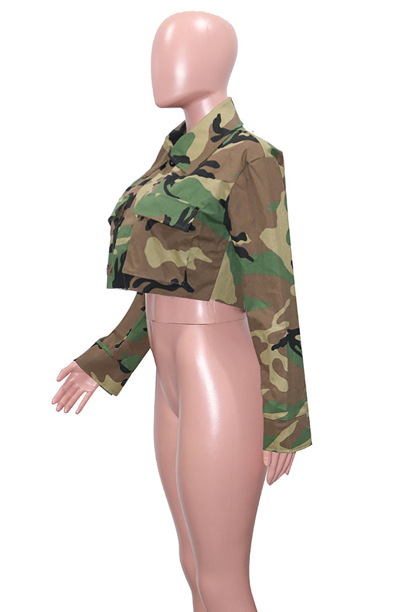 This casual loose camo print cropped jacket combines comfort and style, making it perfect for everyday wear....