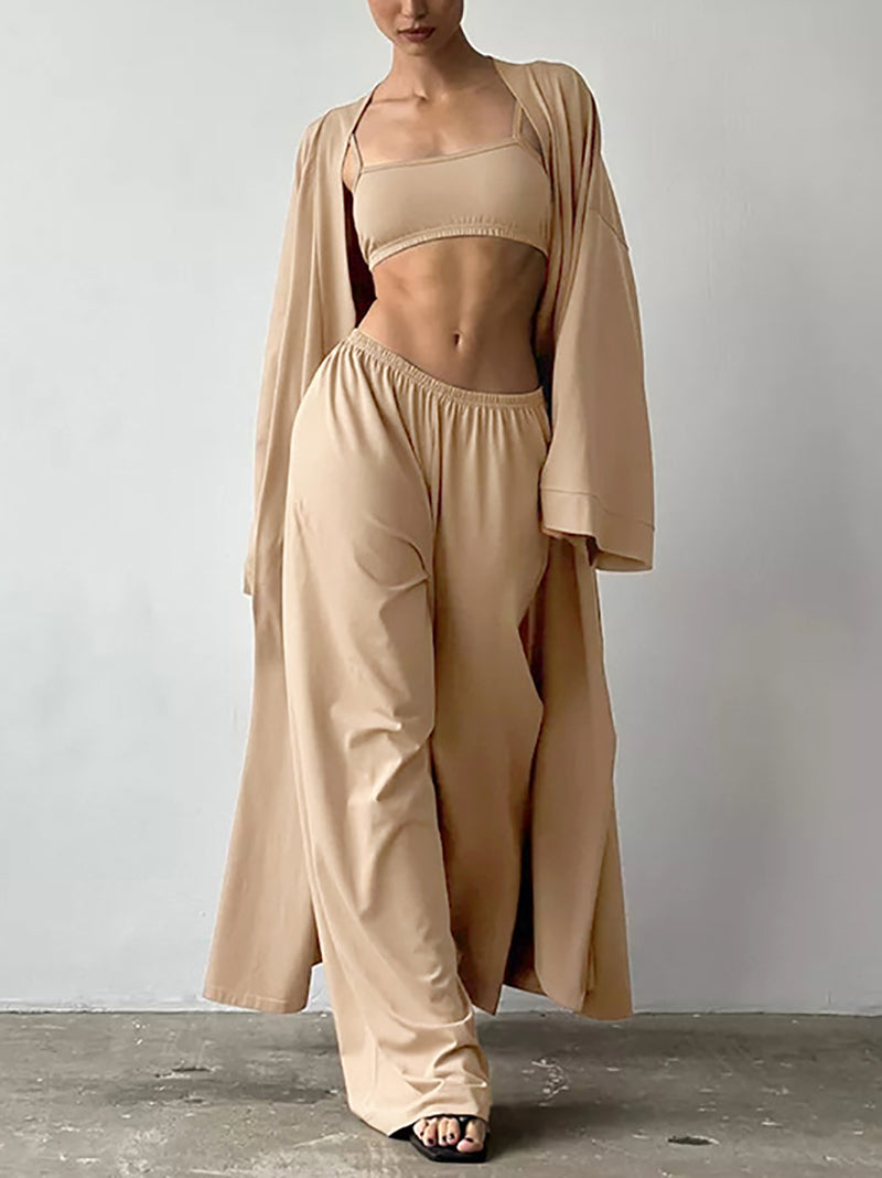 Casual Tube Vest Cardigan Wide Leg Pants 3 Piece Set