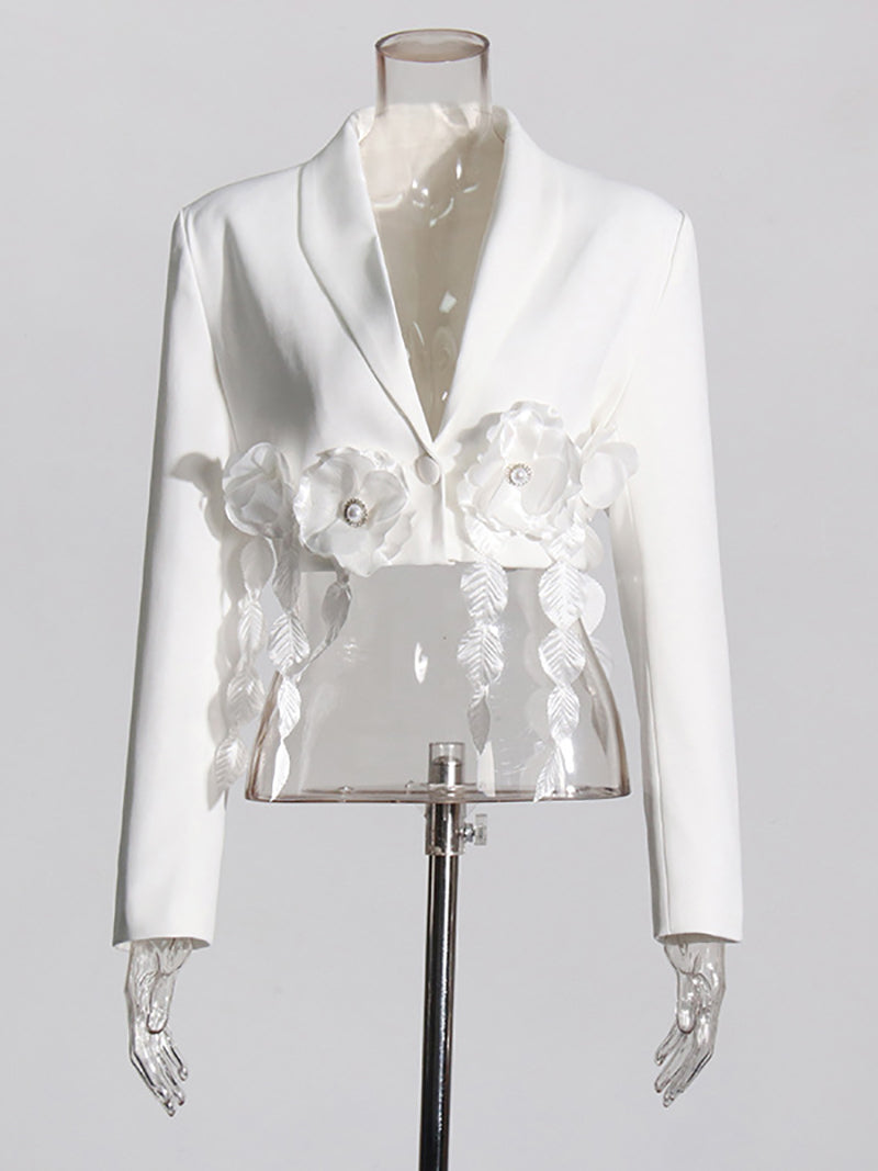 Introducing our Elegant White 3D Floral Tassels Blazers Jacket. This exquisite piece offers high profits and conversions, perfect for wholesalers seeking success. Stand out with its intricate 3D floral design and stylish tassels. A must-have for your inventory.