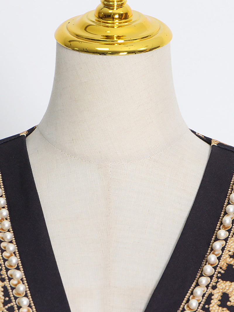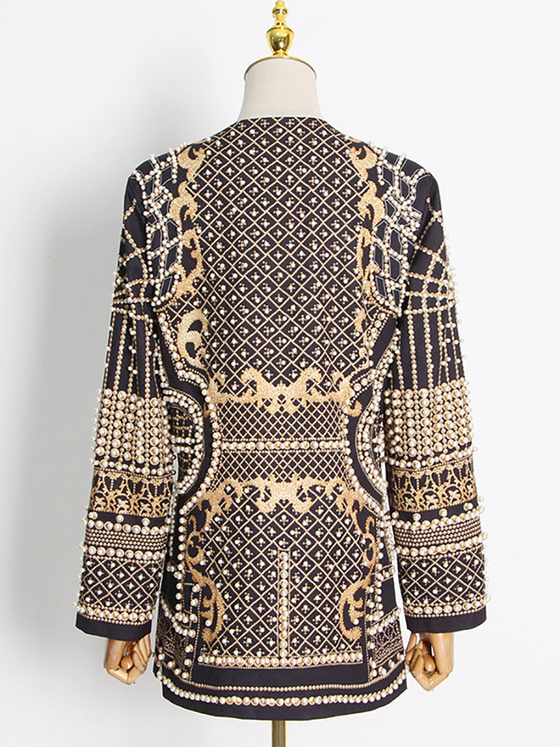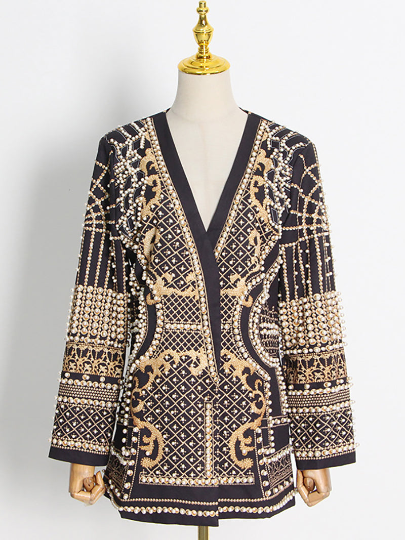 This Fashion Beaded Pearl Print V-Neck Blazer Jacket combines elegant pearl embellishments with a stylish V-neck design, perfect for adding a sophisticated touch to any outfit. Its eye-catching print enhances your look while the tailored fit ensures comfort and confidence. Ideal for wholesalers seeking trendy, high-quality outerwear to expand their inventory.