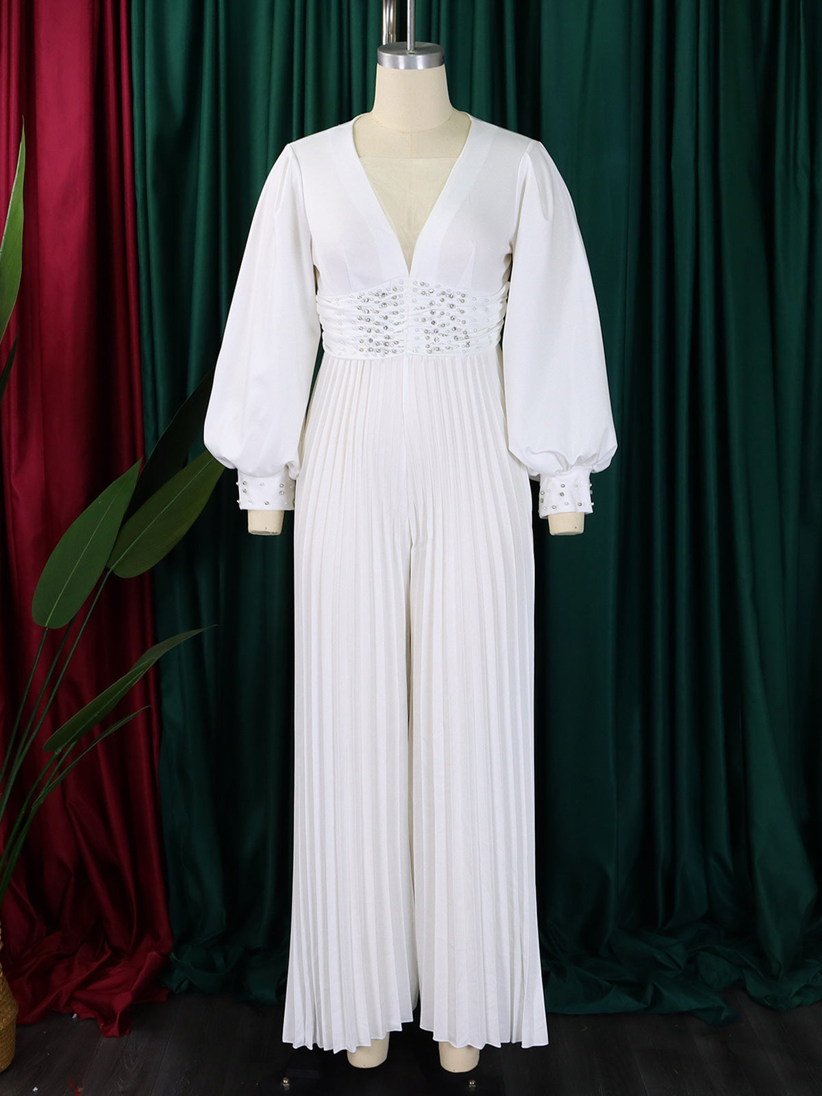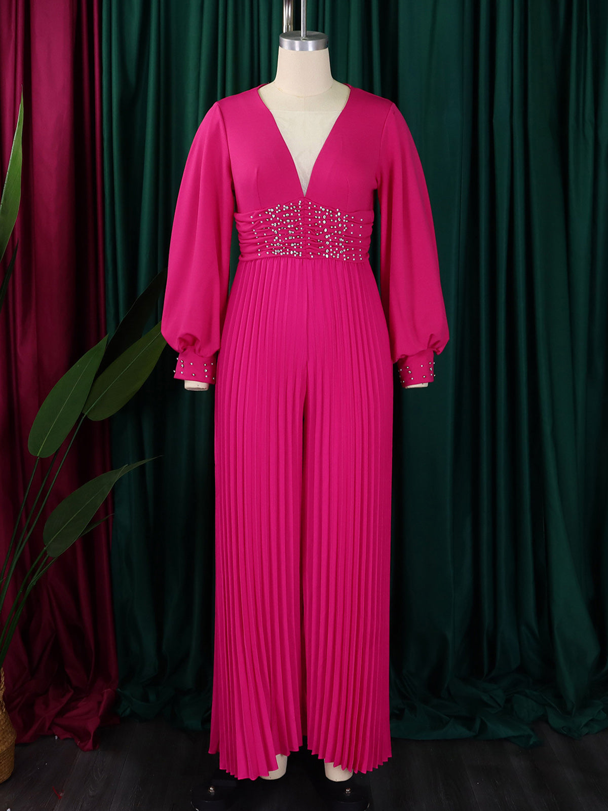 Fashion Beaded V Neck Loose Wide Leg Jumpsuit Elevate your collection with this sophisticated jumpsuit featuring an elegant beaded V neckline and relaxed wide-leg silhouette. The loose fit provides exceptional comfort and versatility, making it ideal for both casual wear and elevated occasions. Quality construction ensures durability for repeat orders. The beaded detailing adds premium appeal without compromising wearability. Perfect for retailers seeking statement pieces that offer excellent profit margins and strong customer demand.