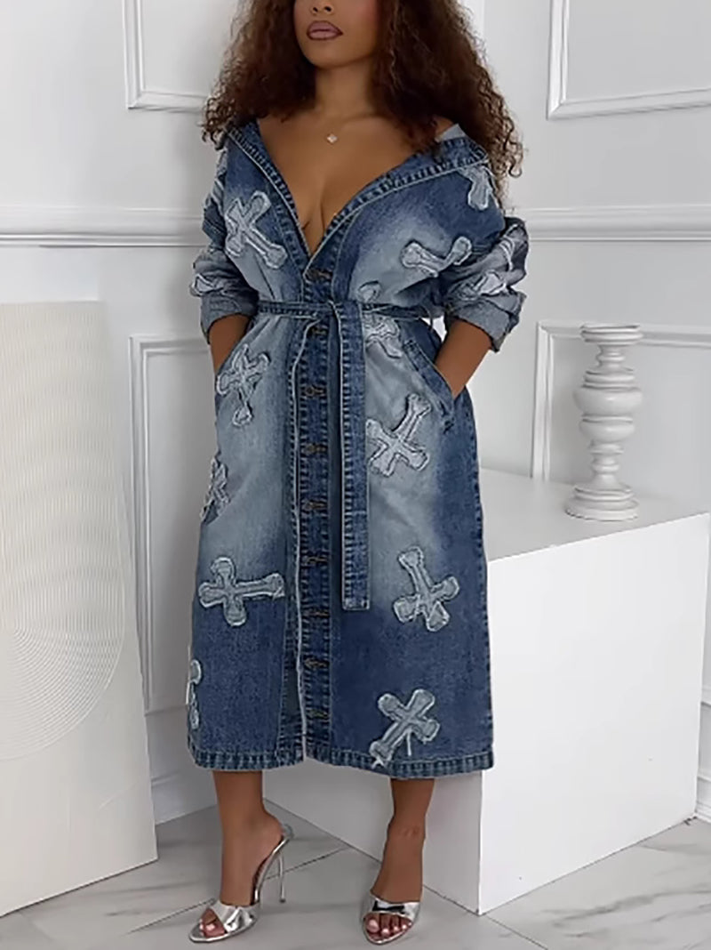 As a wholesaler, we present the Fashion Cross Embroidered Long Denim Jacket. This stylish piece features a long, embroidered denim jacket that adds a touch of elegance to any outfit. Perfect for any occasion, this jacket is sure to impress and elevate your fashion game.