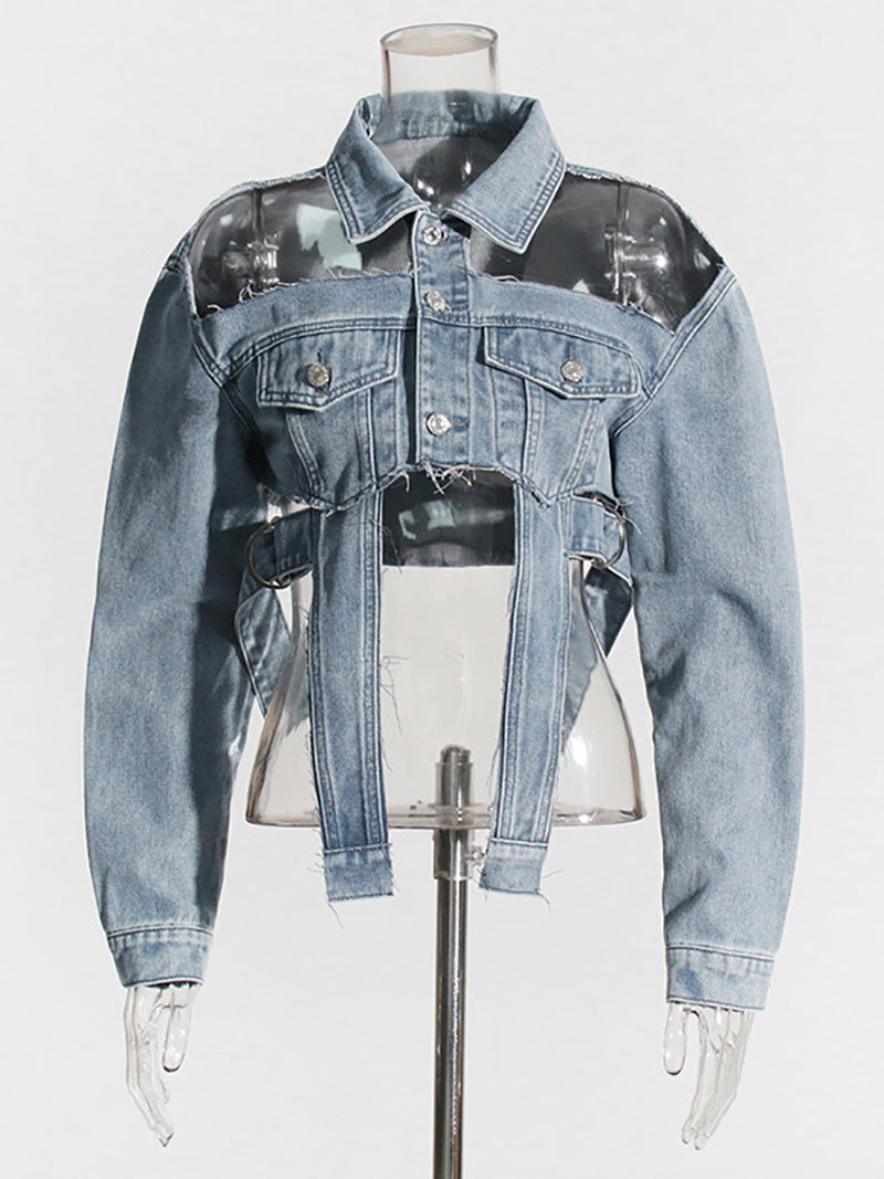 This Fashion Hollow out Lace-up Denim Jacket is the perfect addition to any wardrobe. With its trendy lace-up detail and stylish denim material, it is sure to make a fashion statement. Made with high-quality craftsmanship, it is both comfortable and durable. Elevate your style game with this must-have jacket.