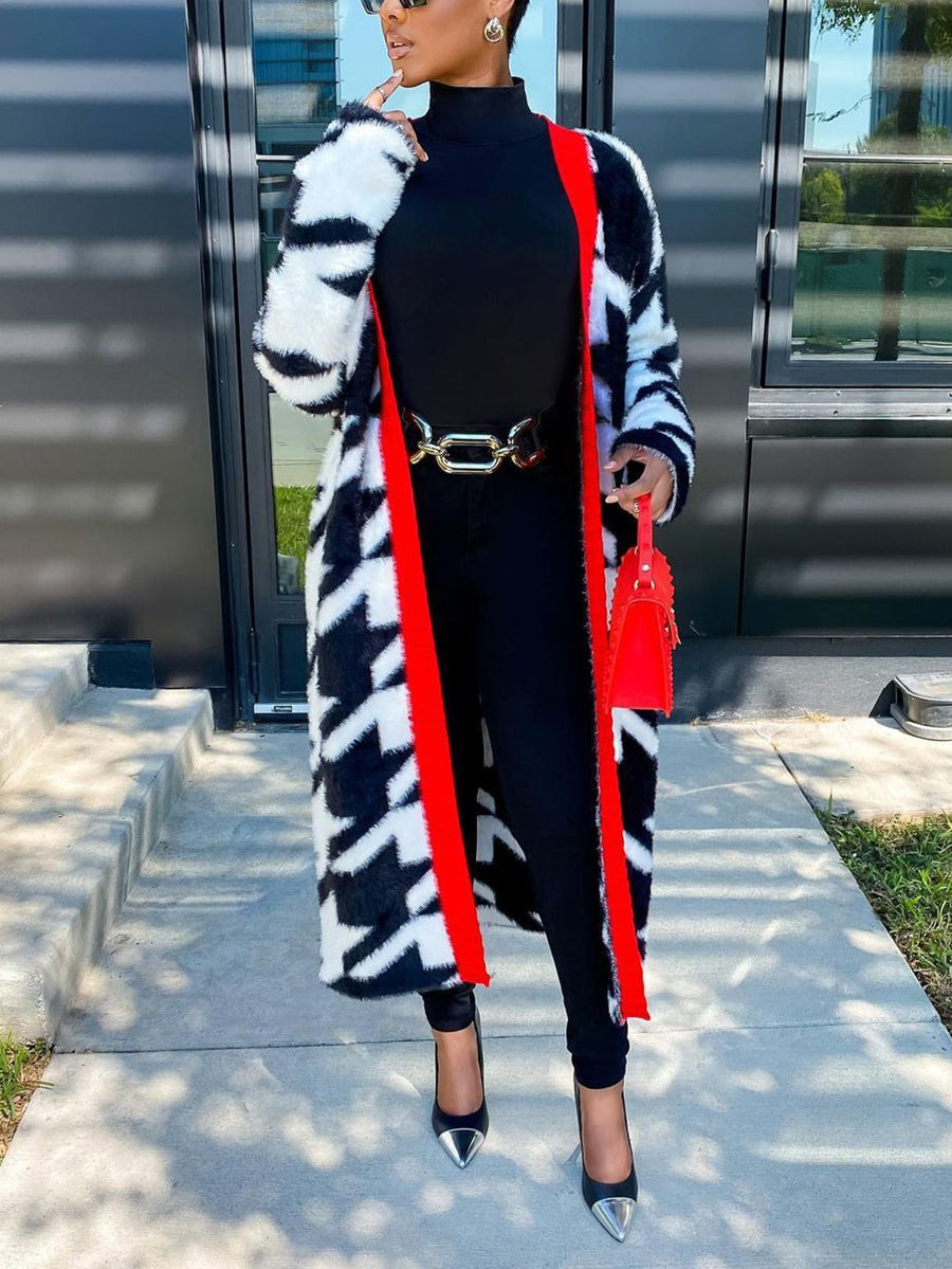 Wholesale supplier: Get the perfect mix of style and affordability with our Fashion Houndstooth Cardigan. Made with high-quality materials, this cardigan offers incredible value for your money. Stay on-trend without breaking the bank.
