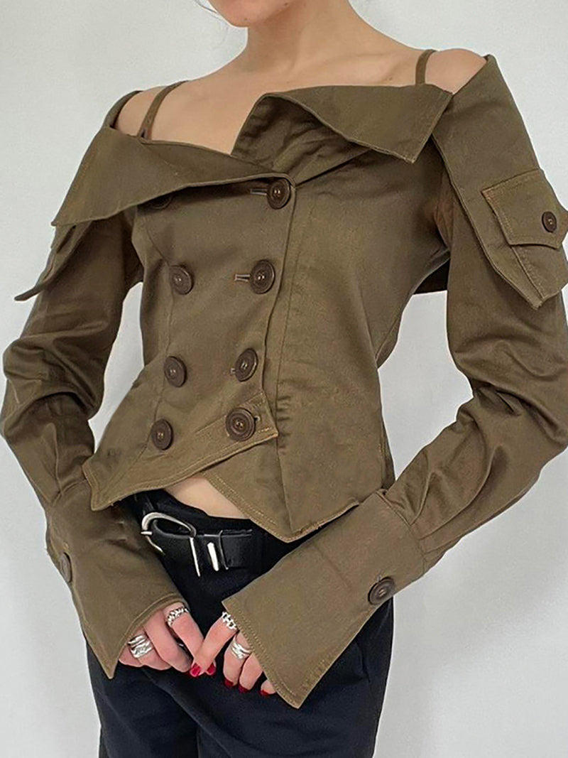 This off shoulder top embodies elegance and modernity with its irregular design. The fashion-forward style is sure to make a statement. Pair it with any bottoms for a unique and stylish look. Elevate your wardrobe with this trendy piece.