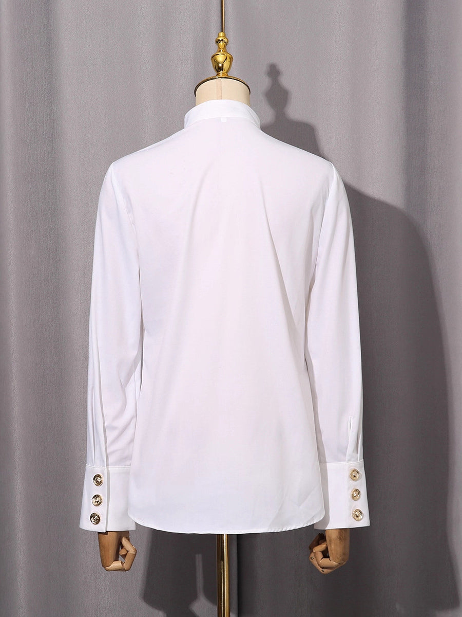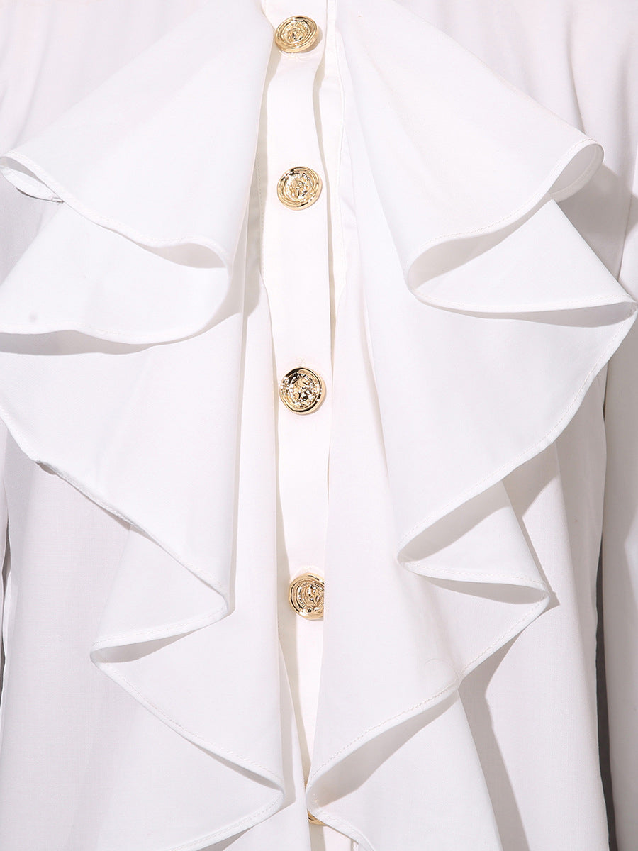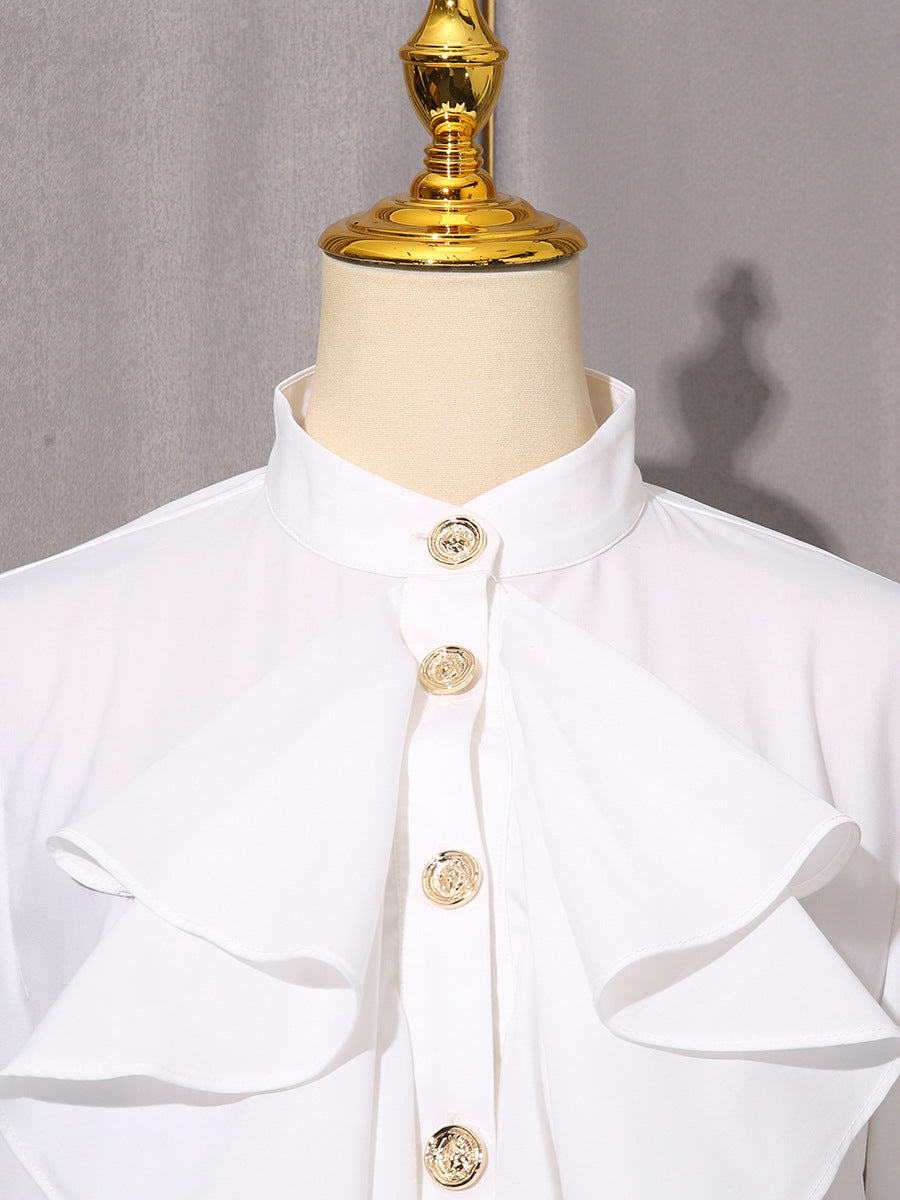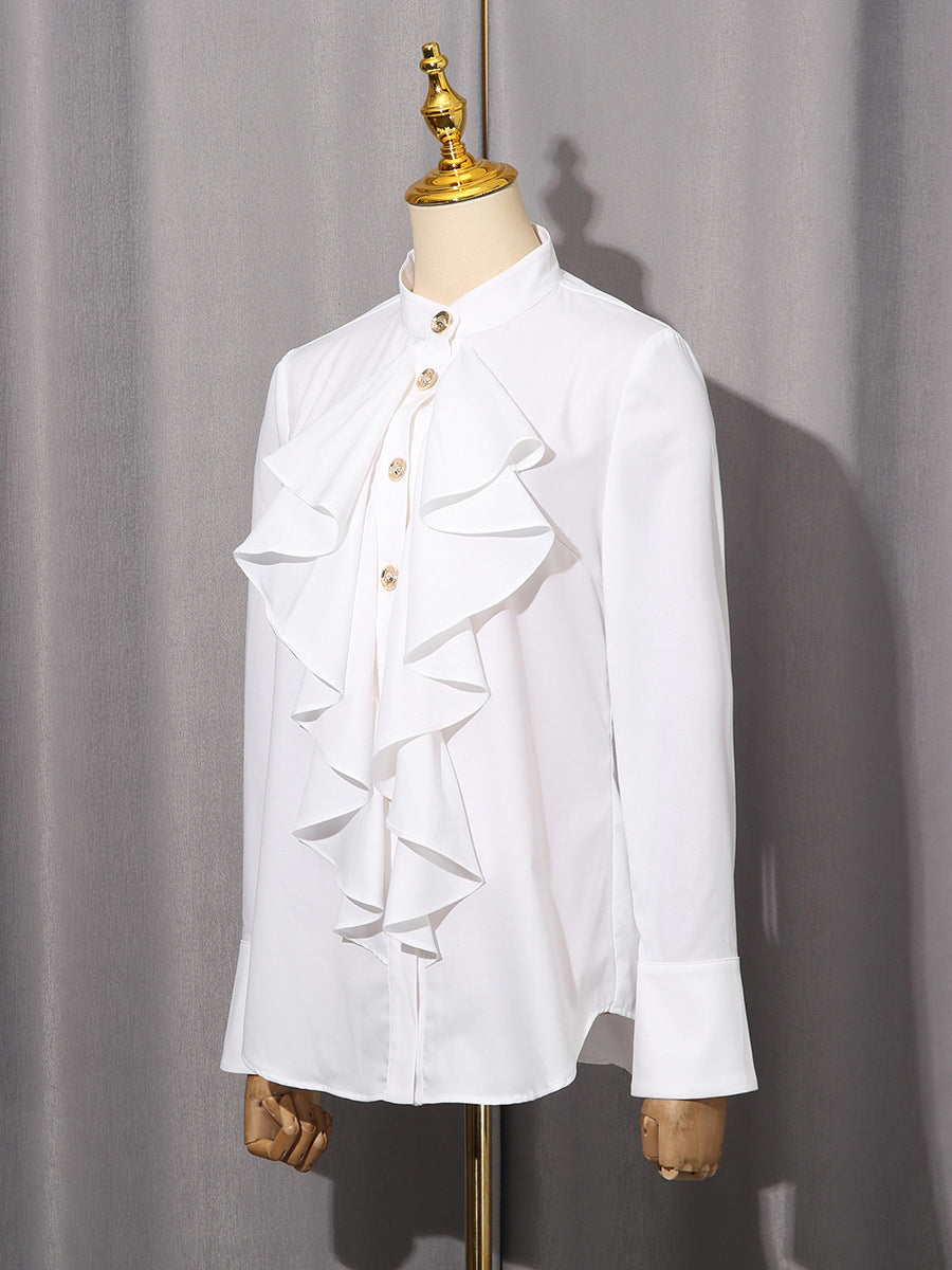 # Fashion Loose Ruffled Poplin Shirt Elevate your collection with this versatile loose-fit poplin shirt, featuring charming ruffled detailing that adds dimension and style. Crafted from quality poplin fabric, this piece offers breathability and durability for everyday wear or layering. The relaxed silhouette flatters multiple body types, making it an excellent wholesale option for retailers seeking on-trend basics. Perfect for casual outfits, office settings, or seasonal transitions. Available in various colorways to meet diverse customer preferences and maximize your inventory appeal.