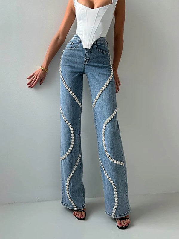 Upgrade your wardrobe with our Fashion Mid-Waist Rhinestone Straight Jeans! These jeans not only offer a high cost performance, but also accentuate your waistline for a sleek and stylish look. Don't miss out on the perfect combination of comfort and fashion. Perfect for wholesalers looking to expand their product line.
