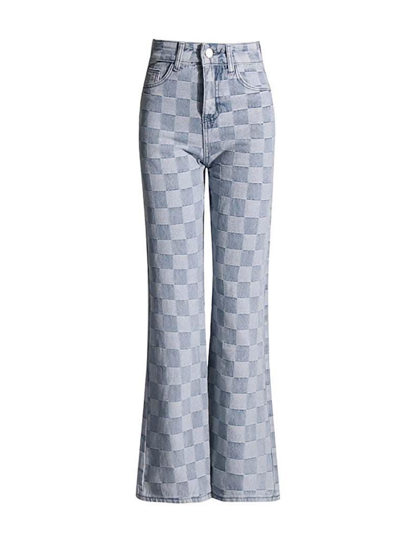 Stay on trend with these Fashion Plaid Straight-leg Jeans. Made from premium materials, these jeans offer a fashionable and sleek look. Perfect for any occasion, they provide comfort and style with their straight-leg fit. Elevate your wardrobe with these versatile jeans.
