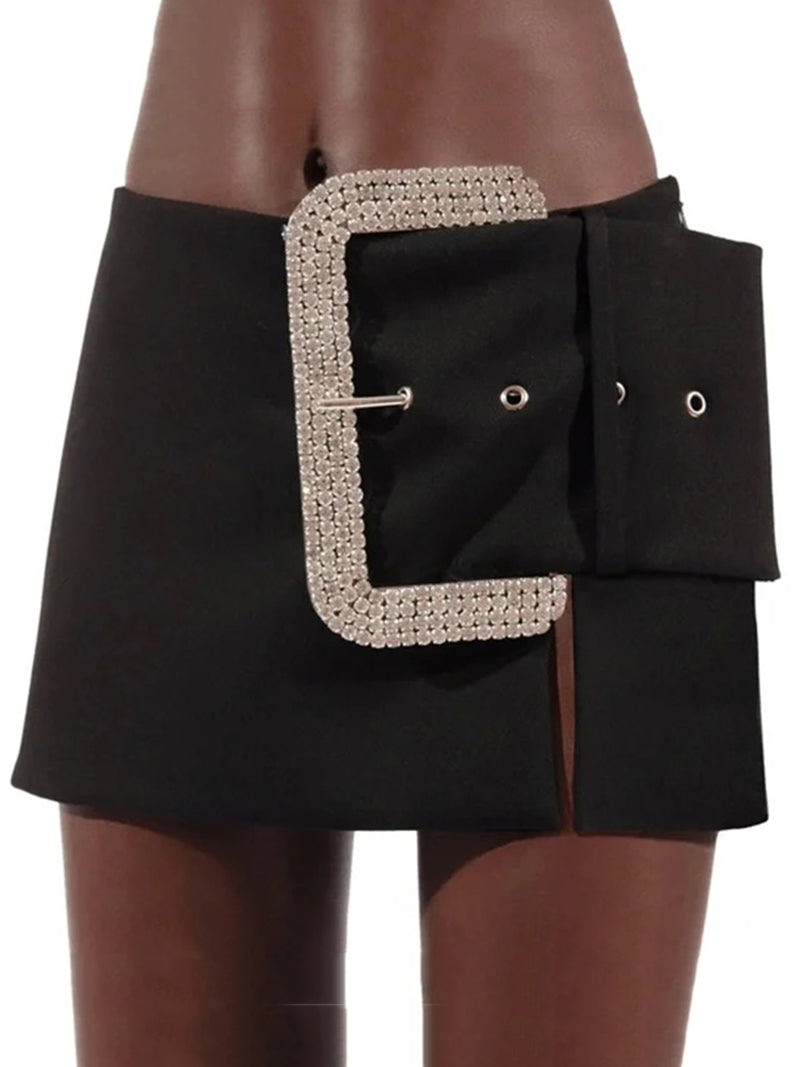 Fashion Rhinestone Ornament Slit Skirt
