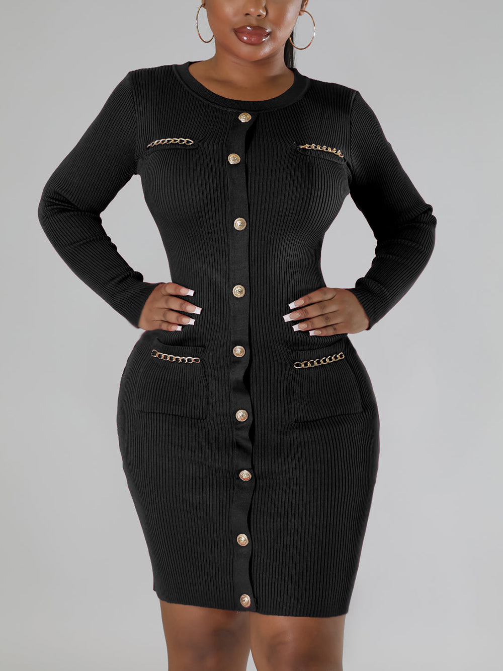 This classic Fashion Round Neck Knit Bodycon Dress is a must-have for any wardrobe. Crafted from a knitted fabric, it has a bodycon silhouette that is designed to hug your curves. The round neckline and long sleeves add an elegant touch, making it an easy choice for day-to-night looks.