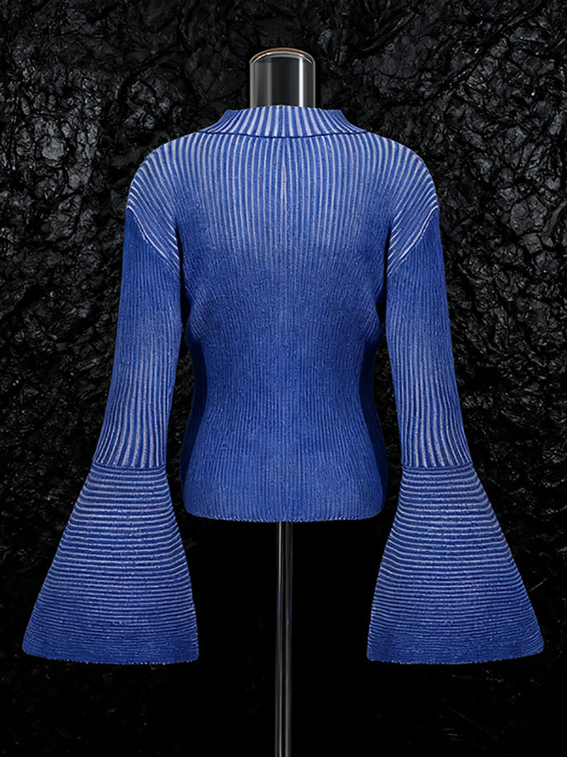Fashion Round Neck Striped Flare Sleeve Slim Sweater This versatile sweater combines classic style with contemporary details. The round neckline offers timeless appeal, while bold stripes add visual interest and dimension. Flared sleeves provide a modern silhouette that flatters various body types, and the slim fit ensures a polished, put-together look. Perfect for layering or wearing solo, this piece transitions seamlessly from casual to semi-formal settings. Ideal for wholesale buyers seeking quality basics with fashion-forward elements that appeal to style-conscious customers.
