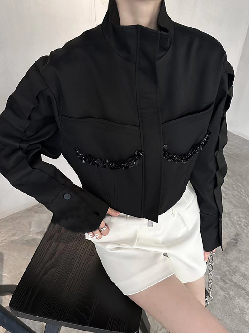 This Fashion Stand Collar Sequin Decorate Cropped Jacket offers both style and affordability. The high-quality materials and sequin decorations make it a standout piece. Perfect for any fashion-forward individual looking to make a statement without breaking the bank.