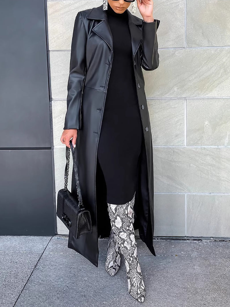 This fashion-styled faux leather trench coat offers a sleek and modern look perfect for wholesale buyers. Crafted from high-quality synthetic leather, it provides the stylish appearance of genuine leather with easier care and durability. Its classic trench design adds a versatile layer to any wardrobe, suitable for various occasions and seasons. Ideal for retailers seeking trendy outerwear that appeals to fashion-conscious customers.