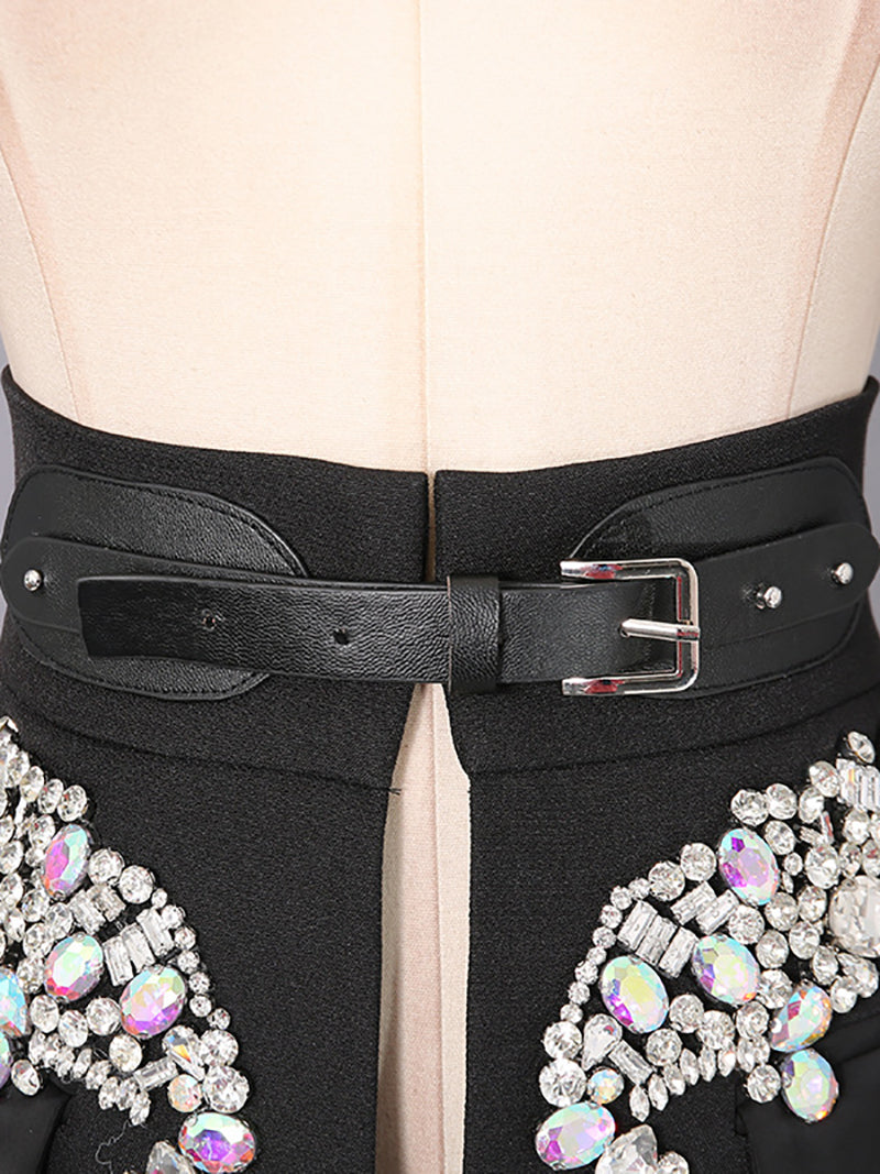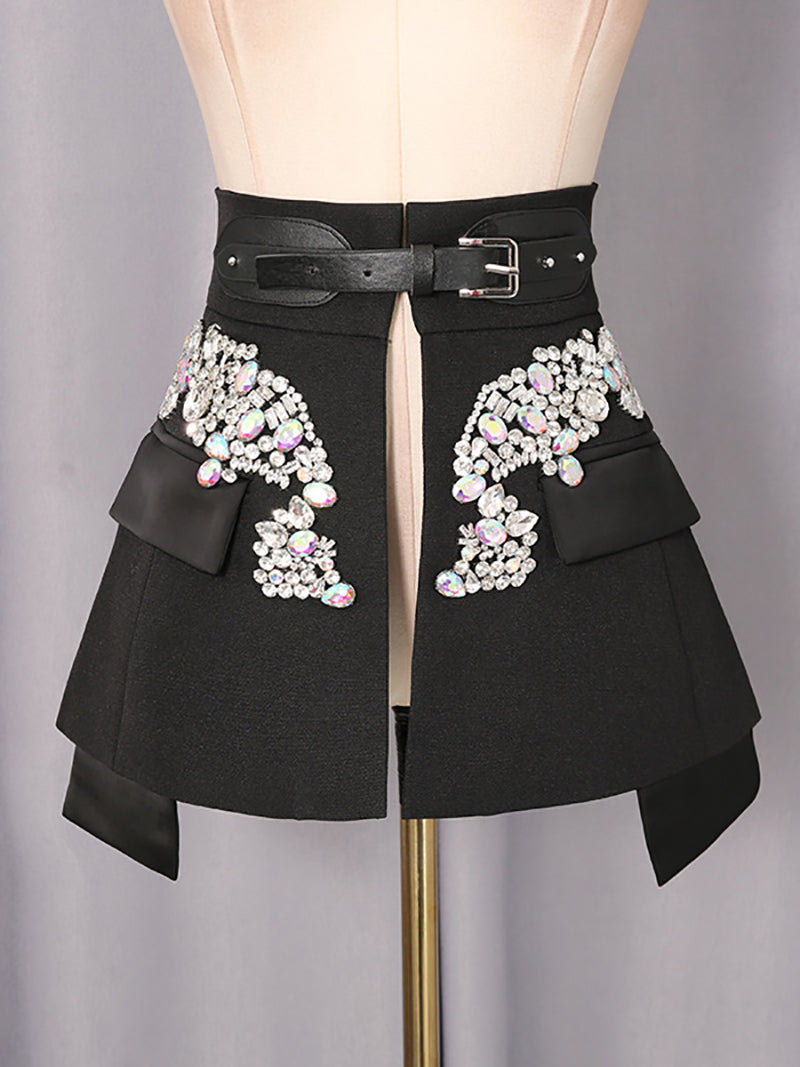 High-Value Rhinestone Belted Mini Skirt