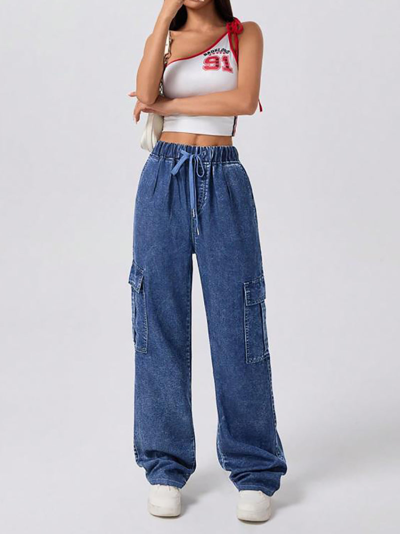 These Retro Elastic Waist Loose Straight Cargo Jeans offer excellent value for money, combining comfort and style at an affordable price, making them ideal for bulk purchasing.