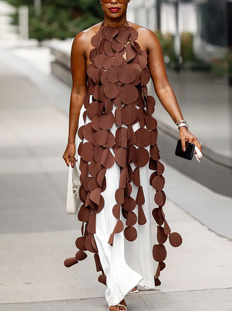 This stylish halter top boasts a backless design and irregular hem, adding a touch of sexiness to...